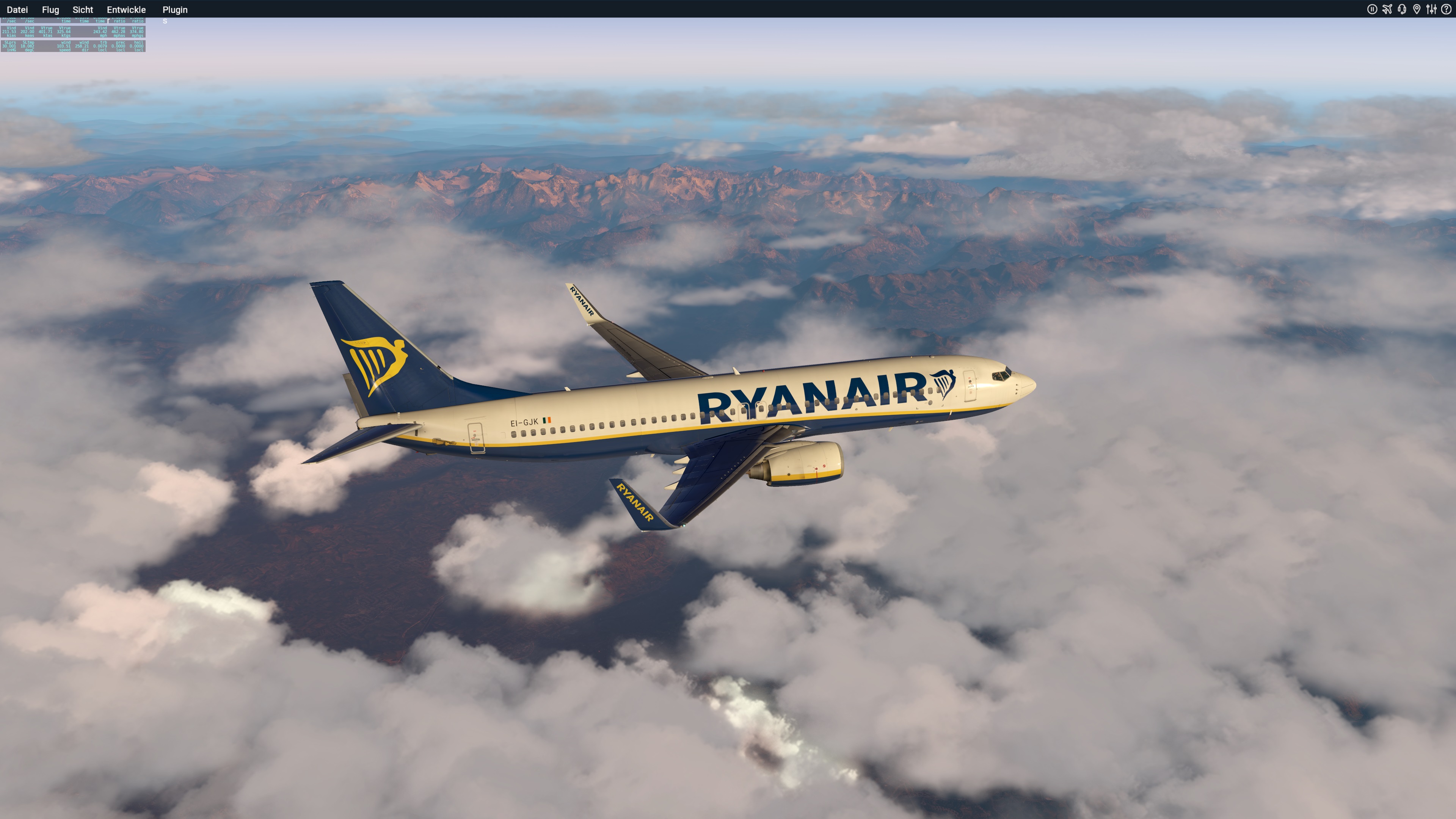 Versuch mit Xplane (737-800 Zibo Mod) von EDDM nach LEBL.(Wetter+ Datum Echtzeit) Kurz über der Schweiz bis dann mein Joystick ein Eigenleben entwickelte.