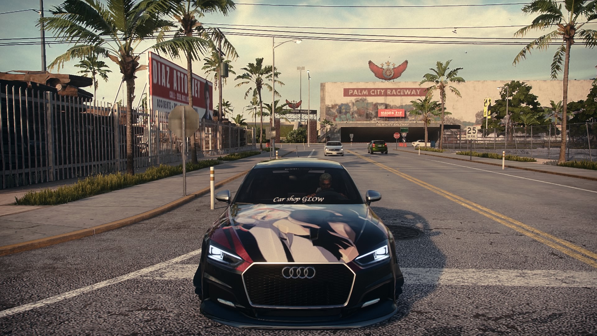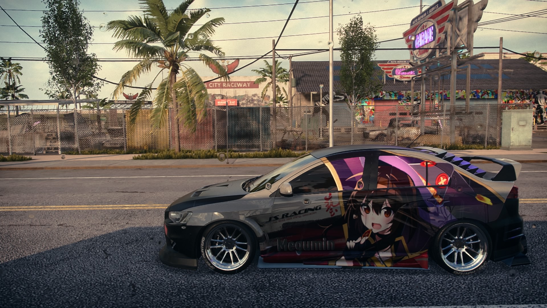 Zwei Straßenrennenkutschen, vor allem mit dem Golf dessen Handling extrem gut ist, nicht mal ansatzweise driften will und zuguter letzt der gute Nissan Skyline von 99, als Drift Bestie mit einem Handling jenseits von gut und bösen. Und ja, die Lackierung und die Aufkleber sind so absichtlich gewollt. Mir gefällt der Look, nur der Spoiler dürfte wohl demnächst ein paar Nummern größer werden. Und ja, die gleiche Perspektive, weil ich in den Rennen nicht unbedingt die Zeit finde, Fotos zu machen.