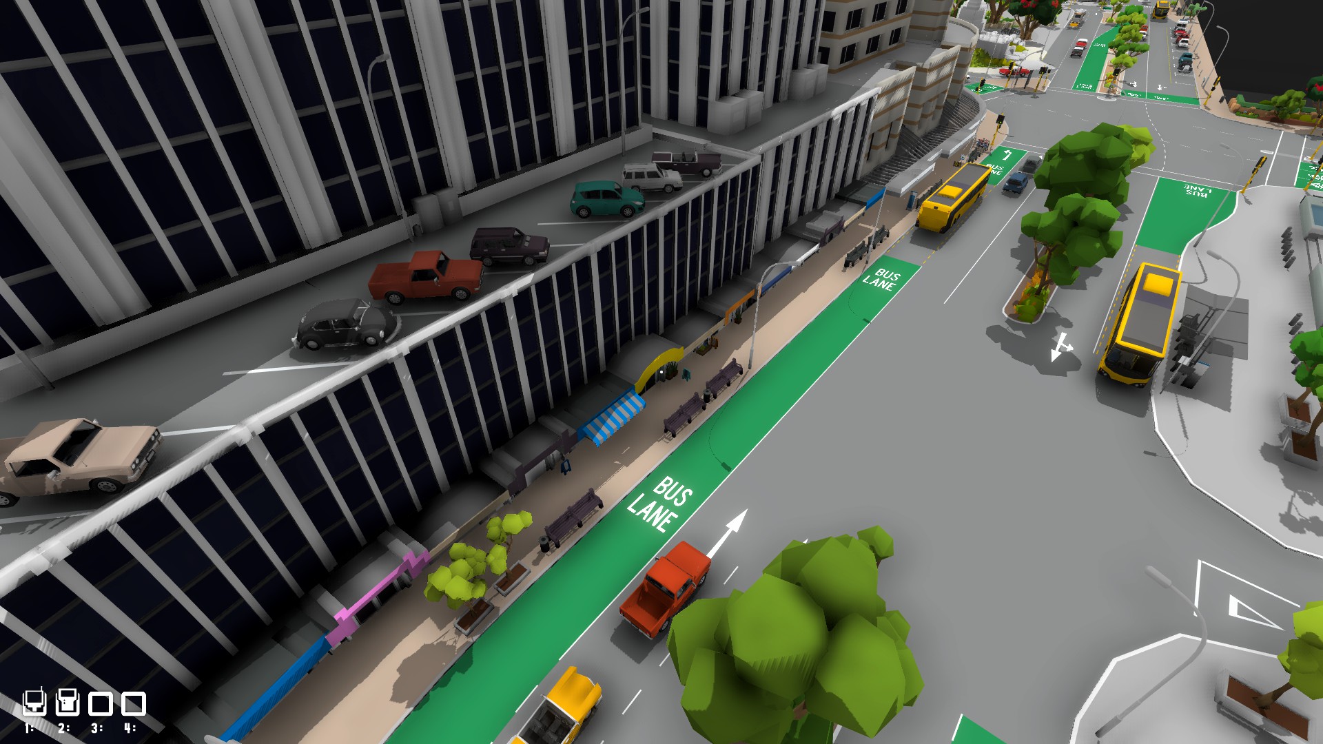 Die Scenerie ist animiert, alsoalle Fahrzeuge fahren auch auf der Strasse und daß mit unterschiedlichen Tempo und Vorfahrt achten.