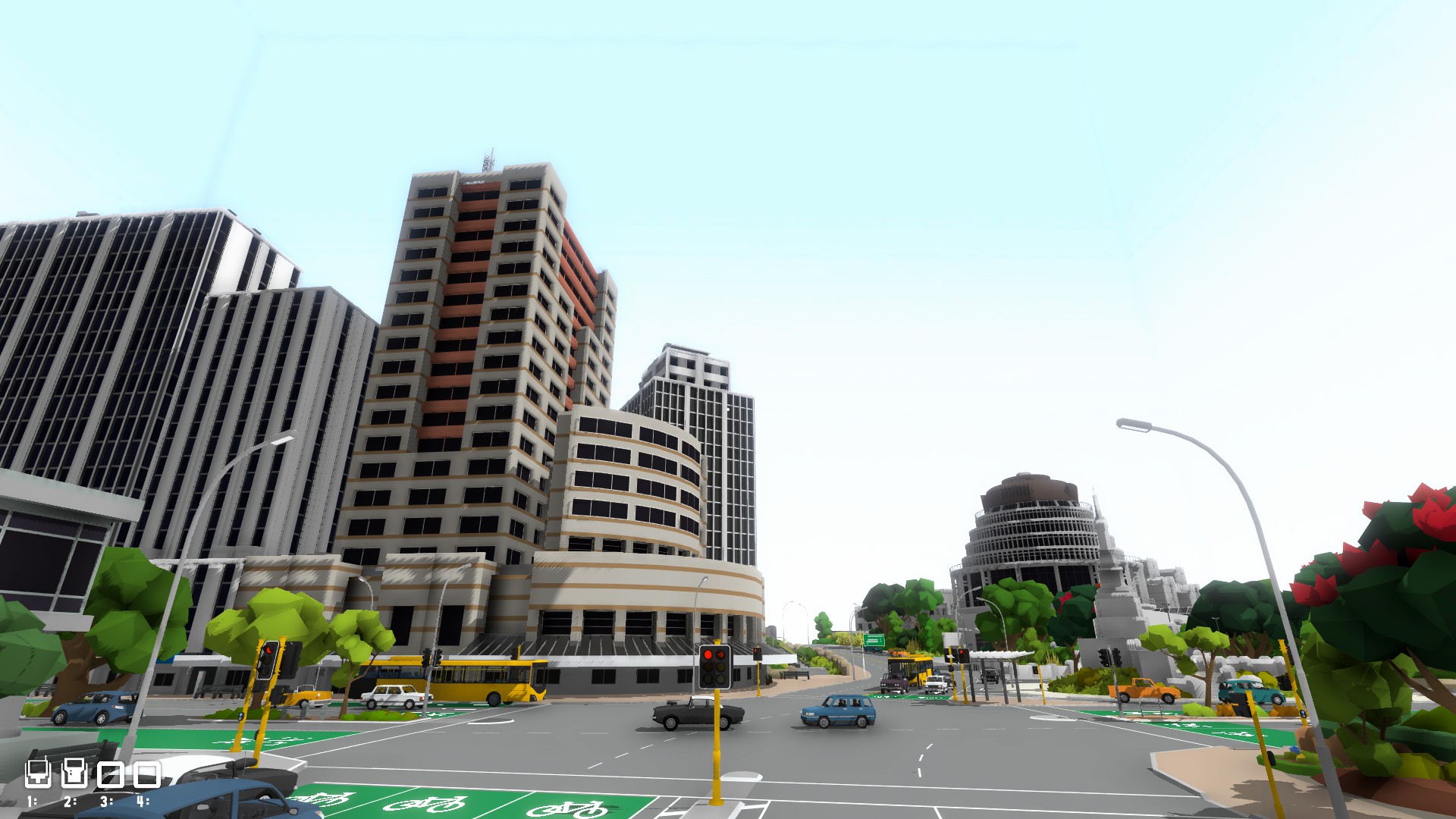 Die Scenerie ist animiert, alsoalle Fahrzeuge fahren auch auf der Strasse und daß mit unterschiedlichen Tempo und Vorfahrt achten.