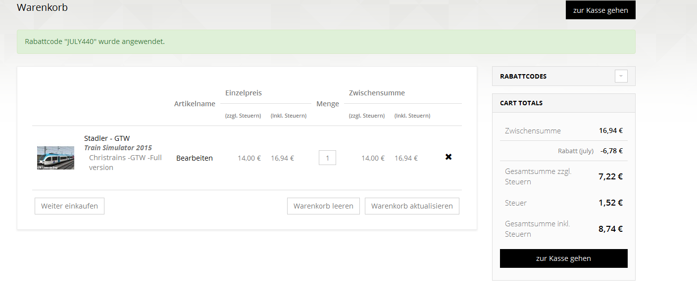 Bei mir kommt bei der Eingabe des Codes JULY440 .... die Meldung: Rabattcode "JULY440" ist ungültig.