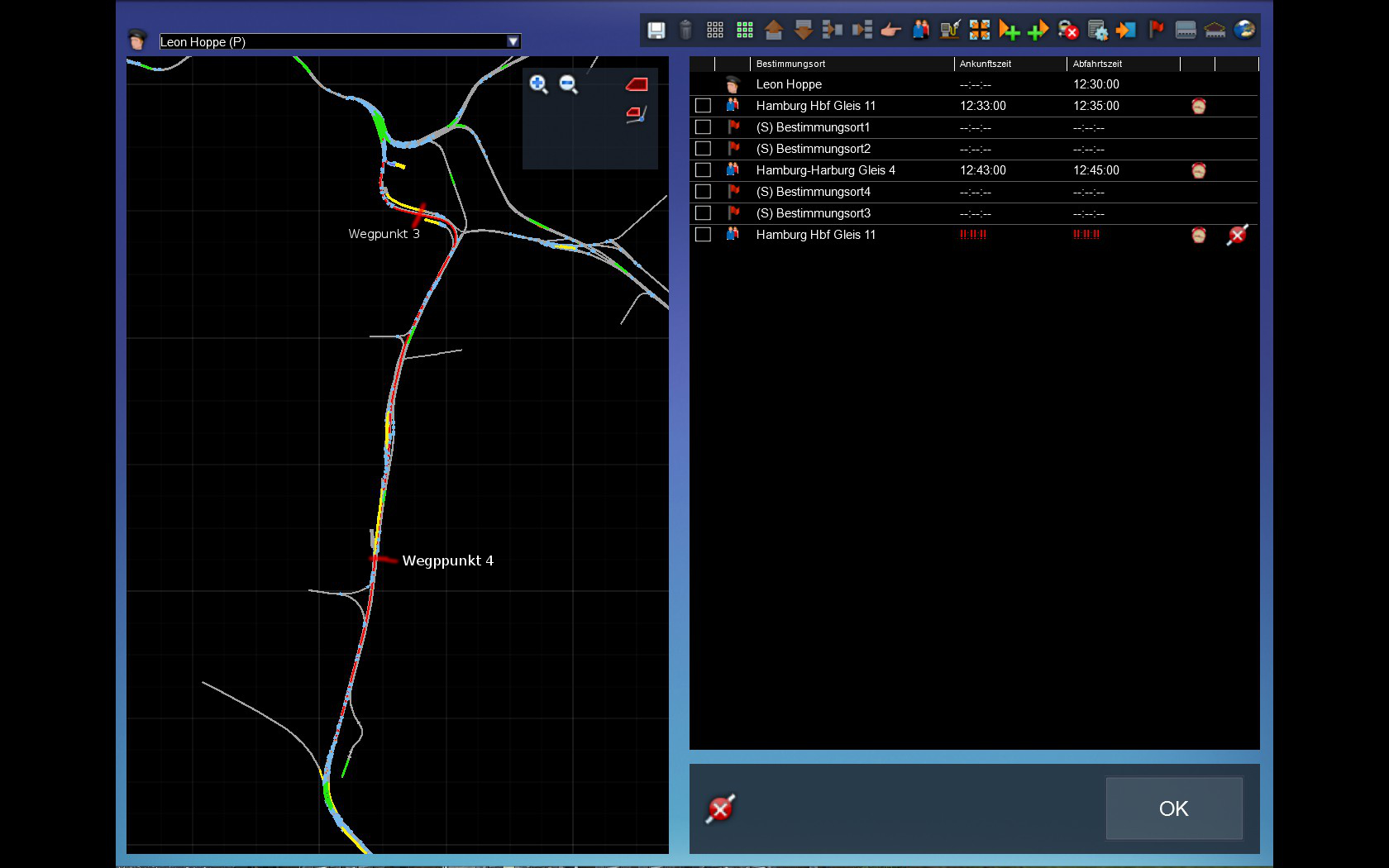 Aber zurück will ich das der Zug auf dem rechten Gleis zurück fährt aber da gibt es Probleme mit den Wegpunkten.