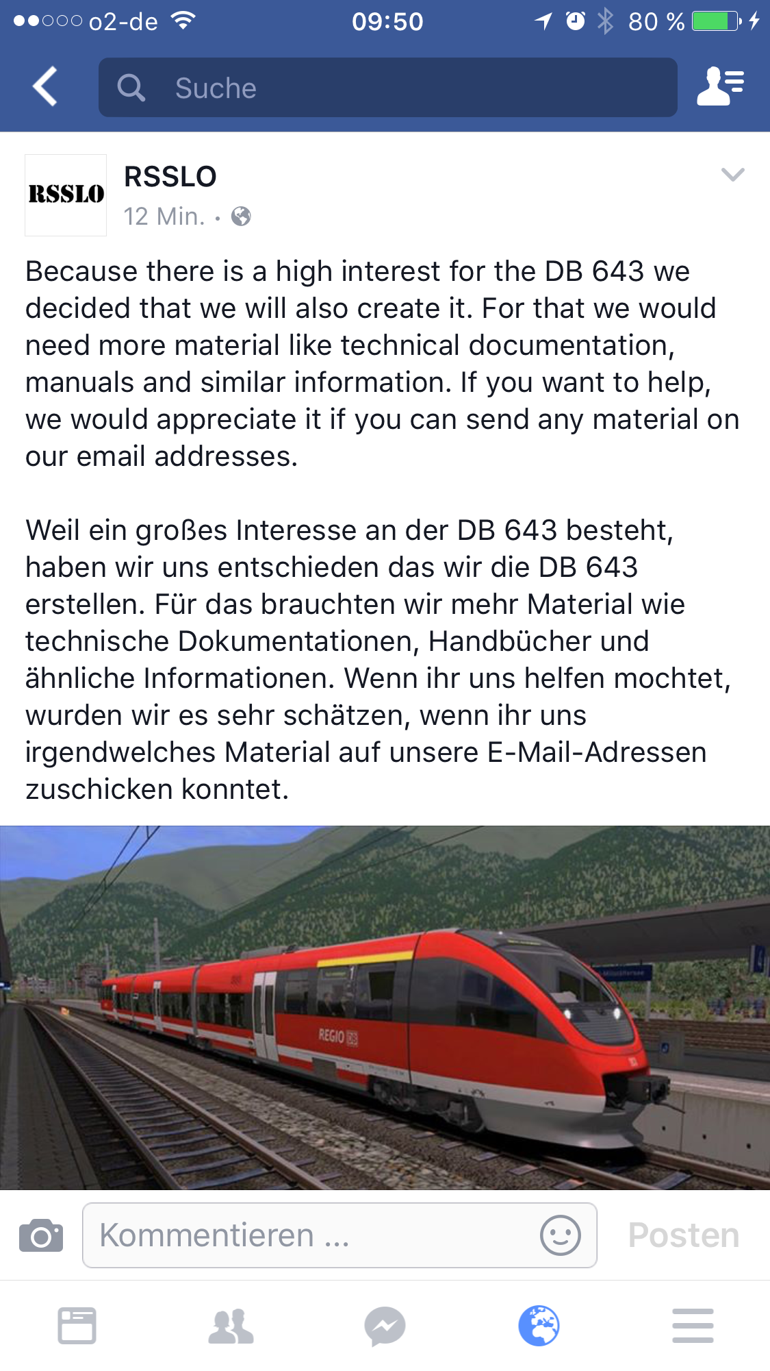 If you want to help, we would appreciate it if you can send any material on our email addresses.Weil ein großes Interesse an der DB 643 besteht, haben wir uns entschieden das wir die DB 643 erstellen.