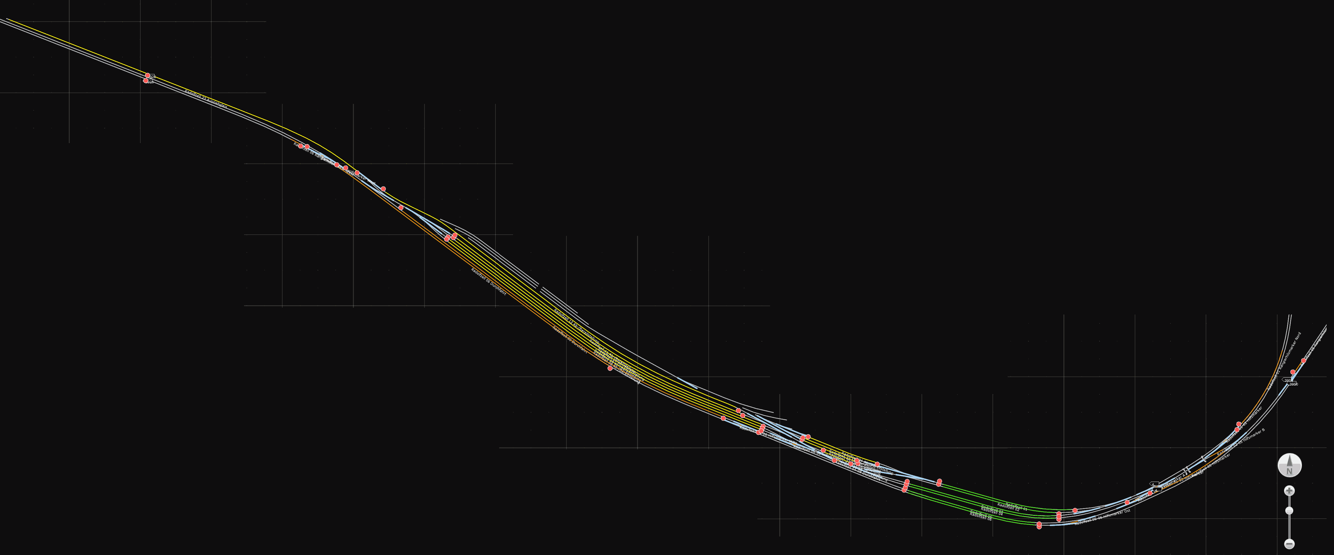 Mit meiner "normalen" 140kmh-Gleisregel könnte ich das nicht bauen, weil der Minimalradius dieser Gleisregel höher ist, weil ich eine maximale Überhöhung von 5,6° vorgab, was ca. 140mm Überhöhung bedeutet. Der Minimalradius laut Formel hierfür ist aber ca. 1016 Meter, also viel zu groß.
