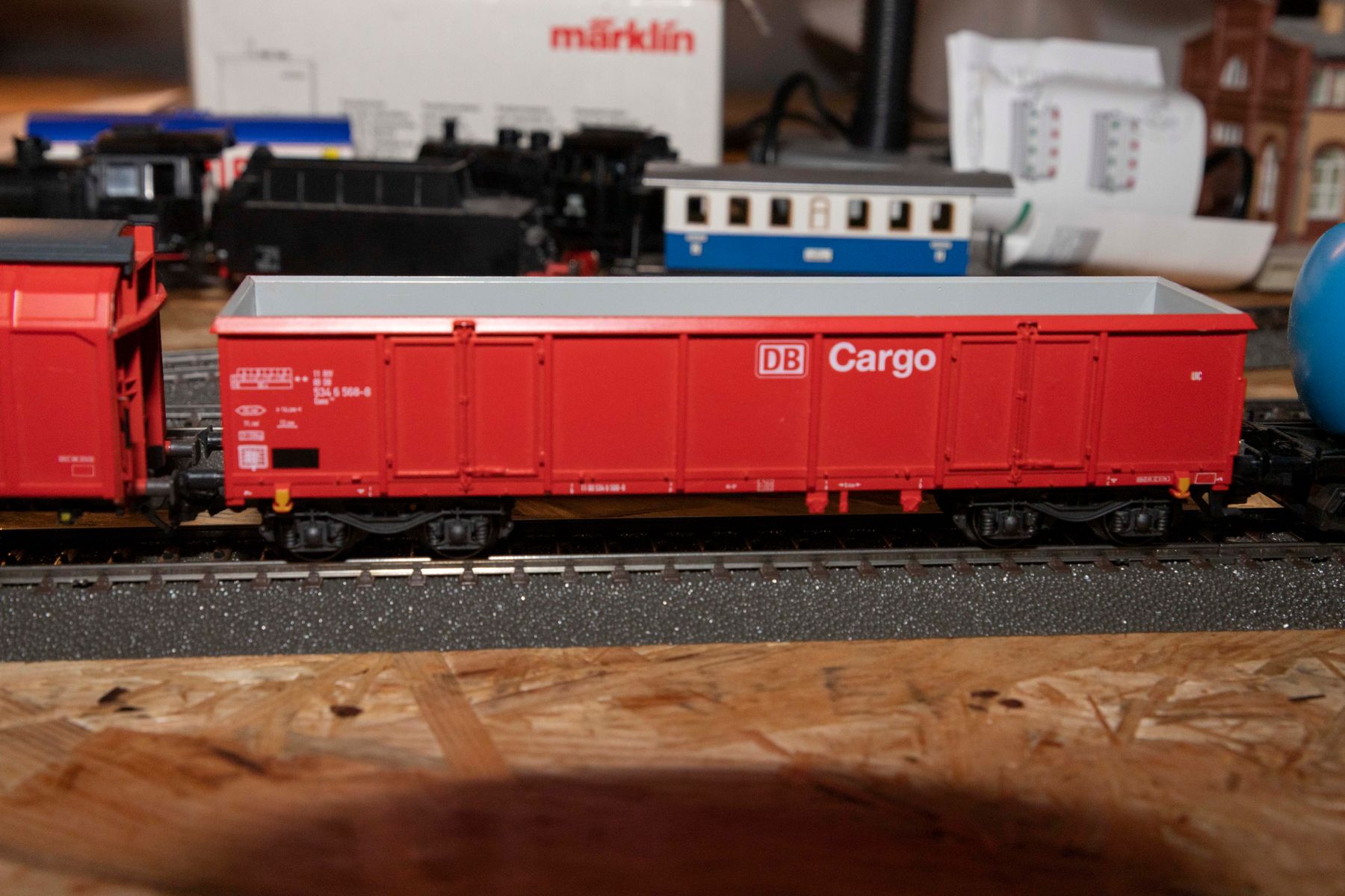 Auch habe ich och ein paar weitere gedeckte Güterwagen mit Werbeaufdrucken. Die auf den Bilder zu sehenden sind alle voll fahrbereit, ein paar weitere (2 x Haribo) sind beschädigt oder fehlen Kupplungen. Einzig den "Vivil" würde ich behalten, der Rest darf weg. Gerne bin ich auch da für ein Tauchgeschäft zu haben, ich suche vor allem epochentypische Selbstentladewagen oder gedeckte.