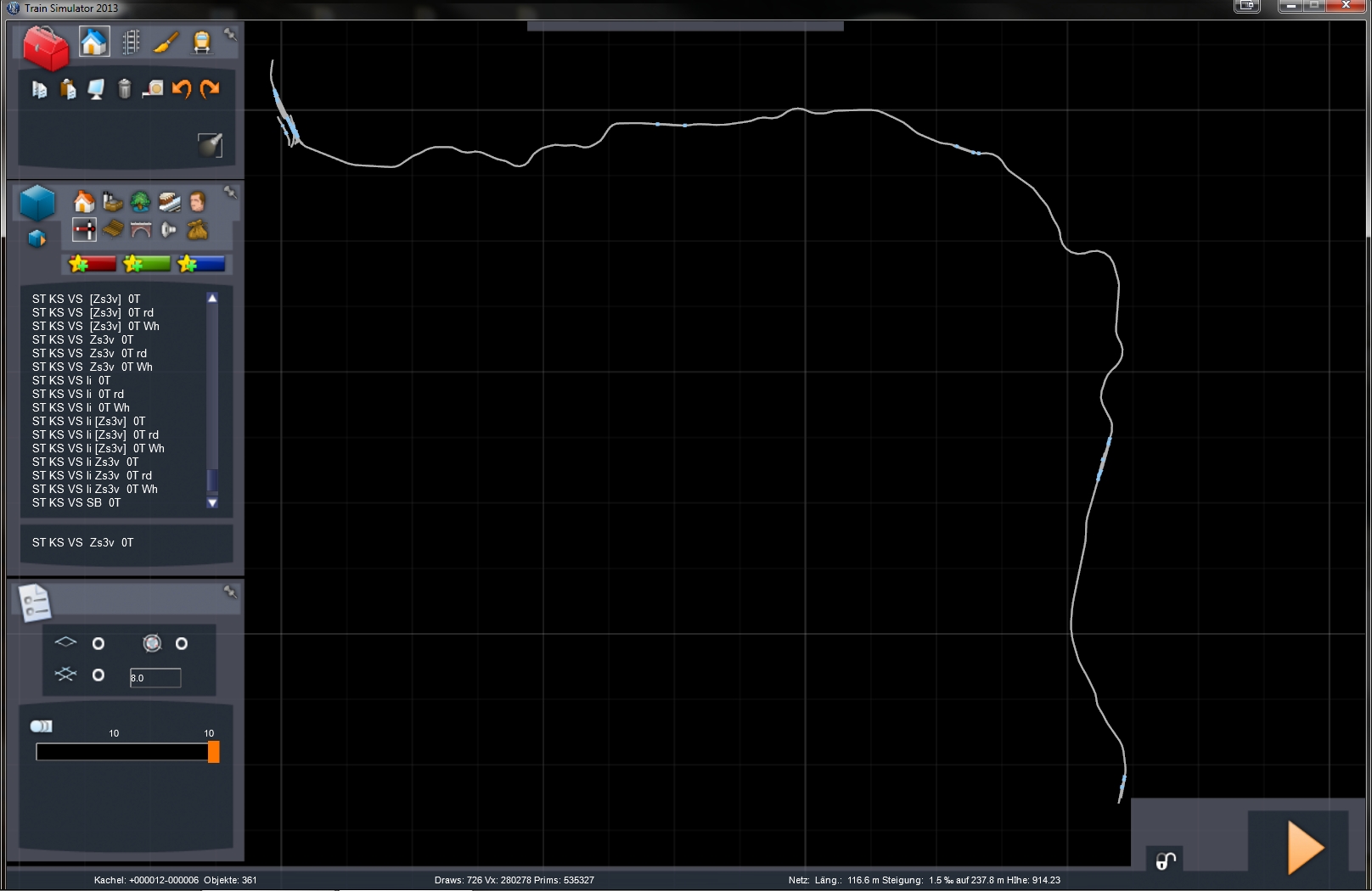 Die Objekte sind für die Strecke ja leider ein Problem. Ich kann die ganzen Objekte nicht bauen, also muss ich eben improvisieren. Ich denke sowieso, dass es von meiner Seite aus keine fertige Strecke jemals geben wird. Dazu fehlen einfach wie gesagt Objekte und auch nähere Unterlagen zur Strecke.