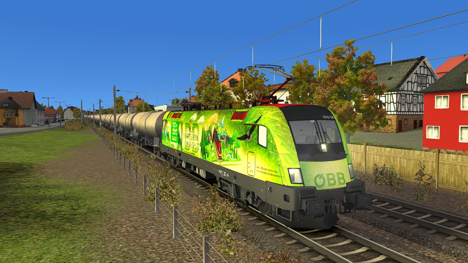 1016 020-0 repräsentiert sich an einem Kesselbomber in Richtung Schweiz.