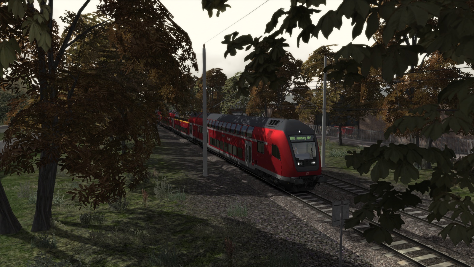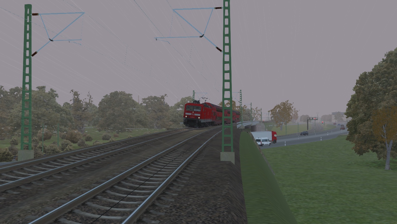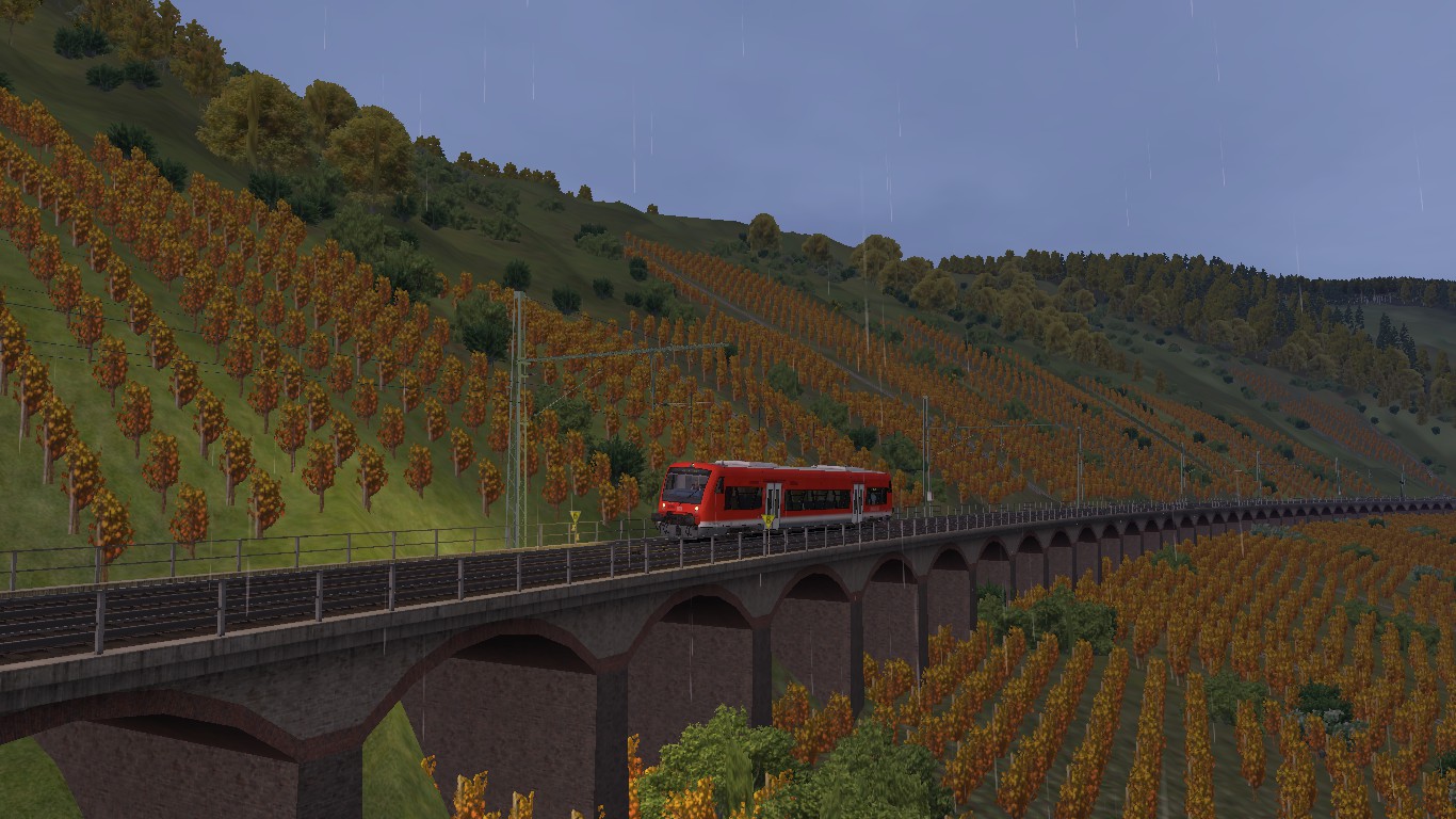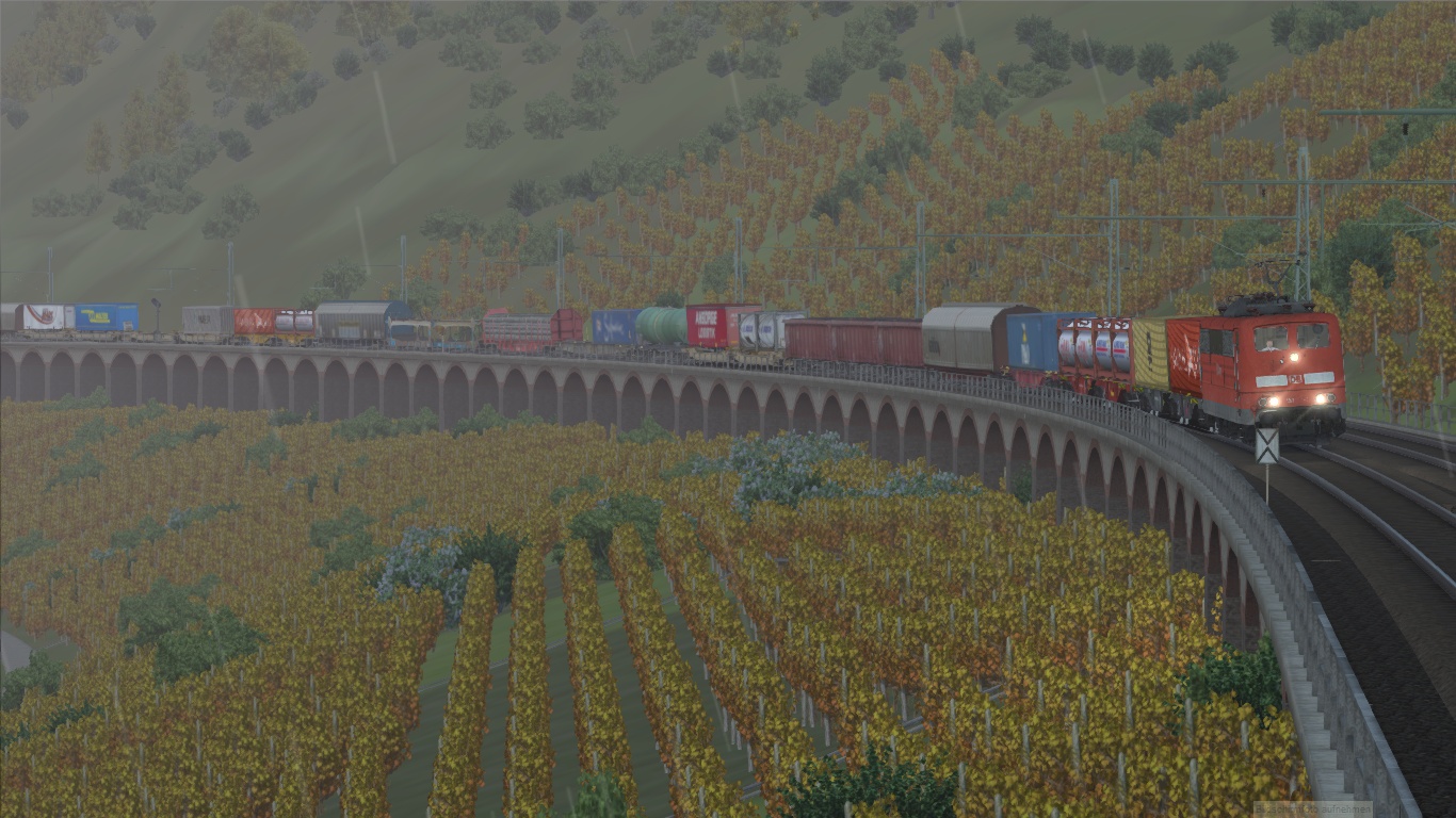 --> Wichtig dabei ist, dass die Umgebung herbstlich erscheint. Regenfälle, Wettereffekte oder ähnliches was sich mit dem Herbst in Verbindung setzen lässt. Der Screenshot muss aus dem Train Simulator 201x stammen.