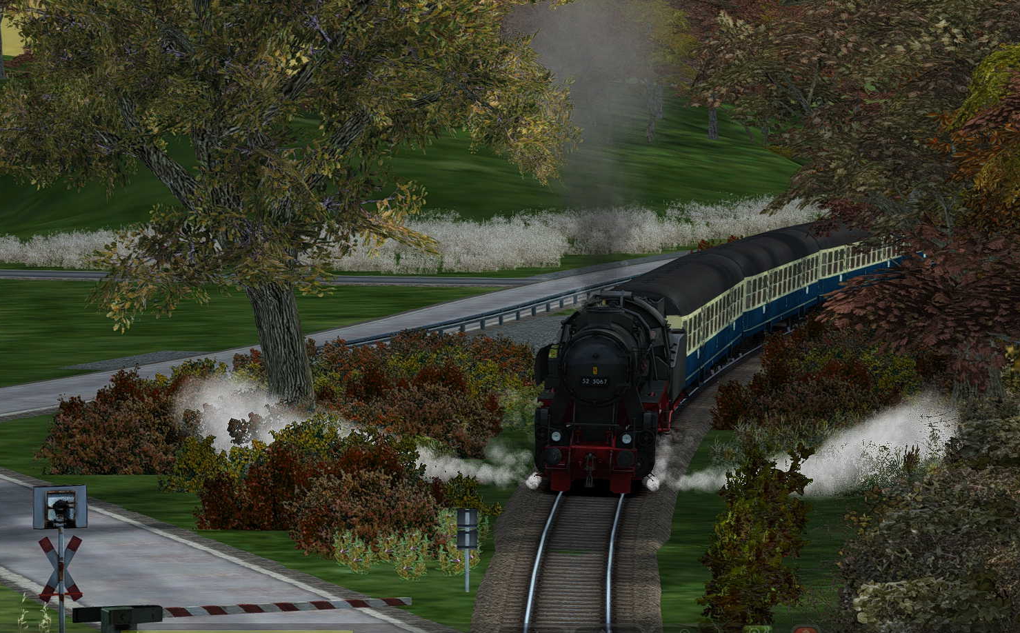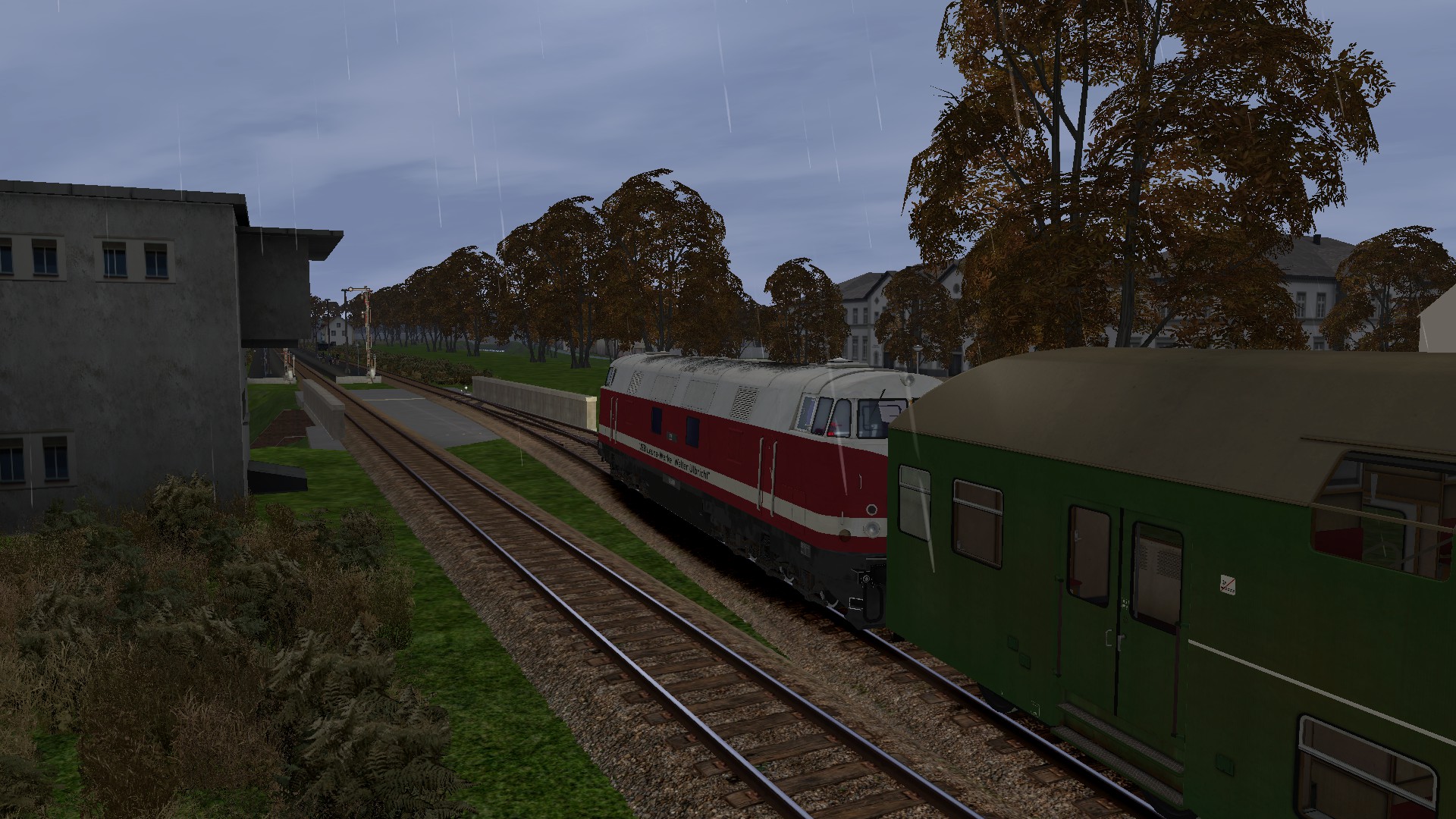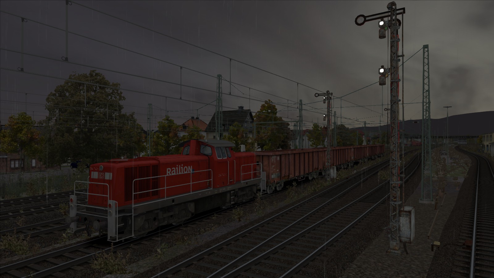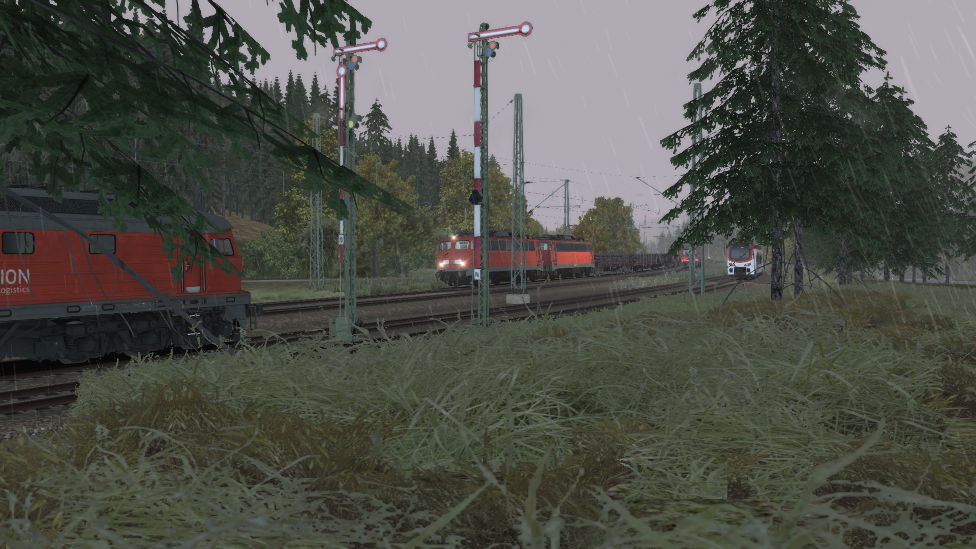 --> Wichtig dabei ist, dass die Umgebung herbstlich erscheint. Regenfälle, Wettereffekte oder ähnliches was sich mit dem Herbst in Verbindung setzen lässt. Der Screenshot muss aus dem Train Simulator 201x stammen.