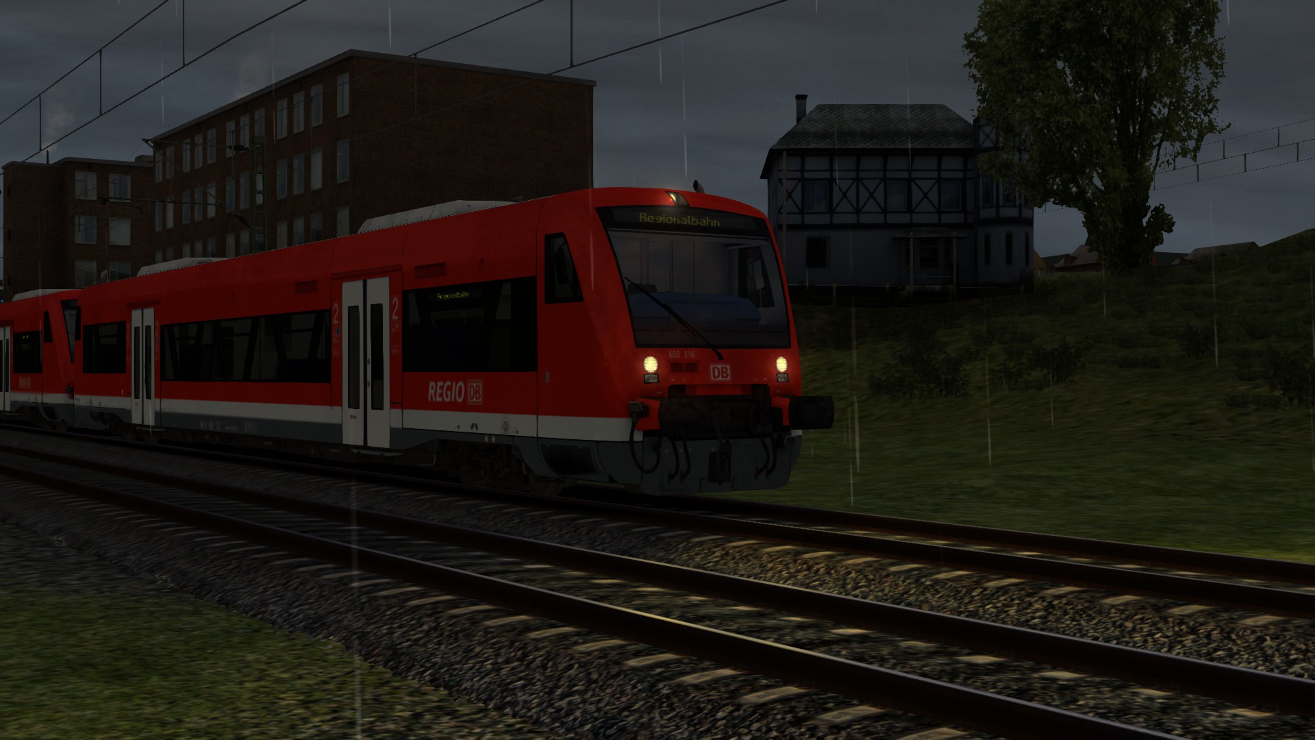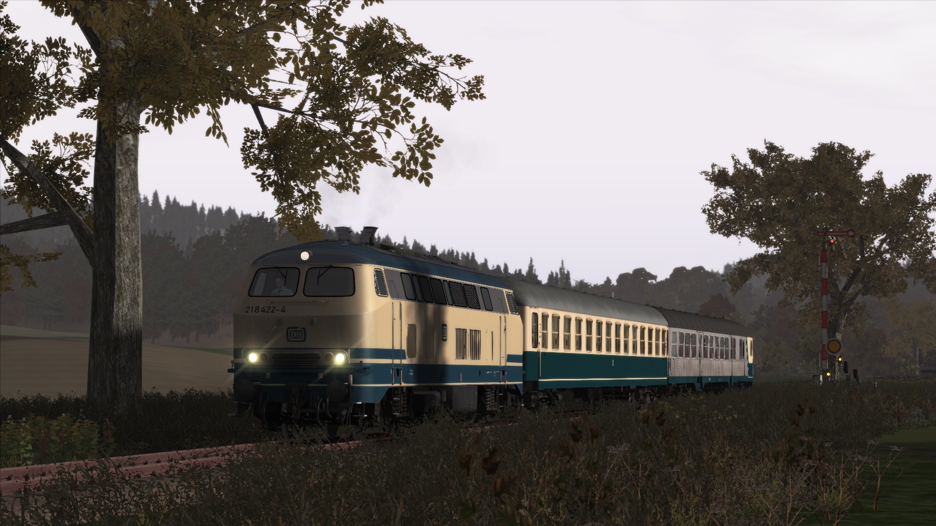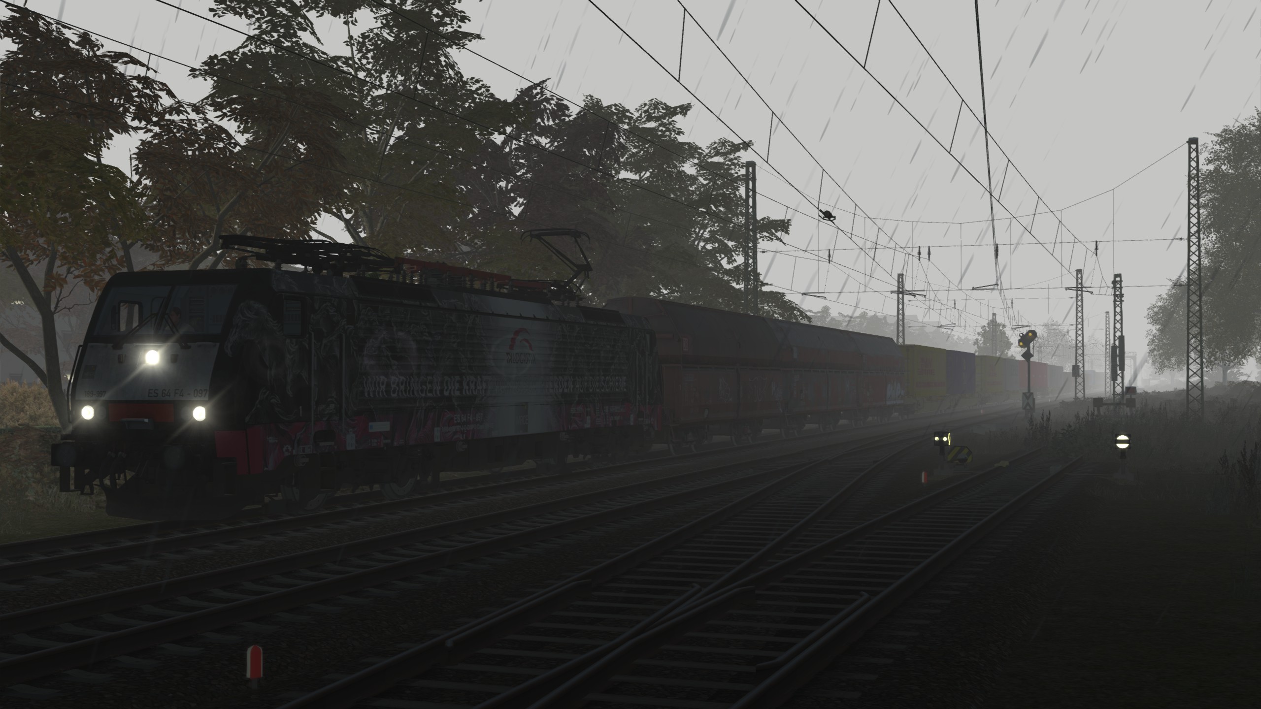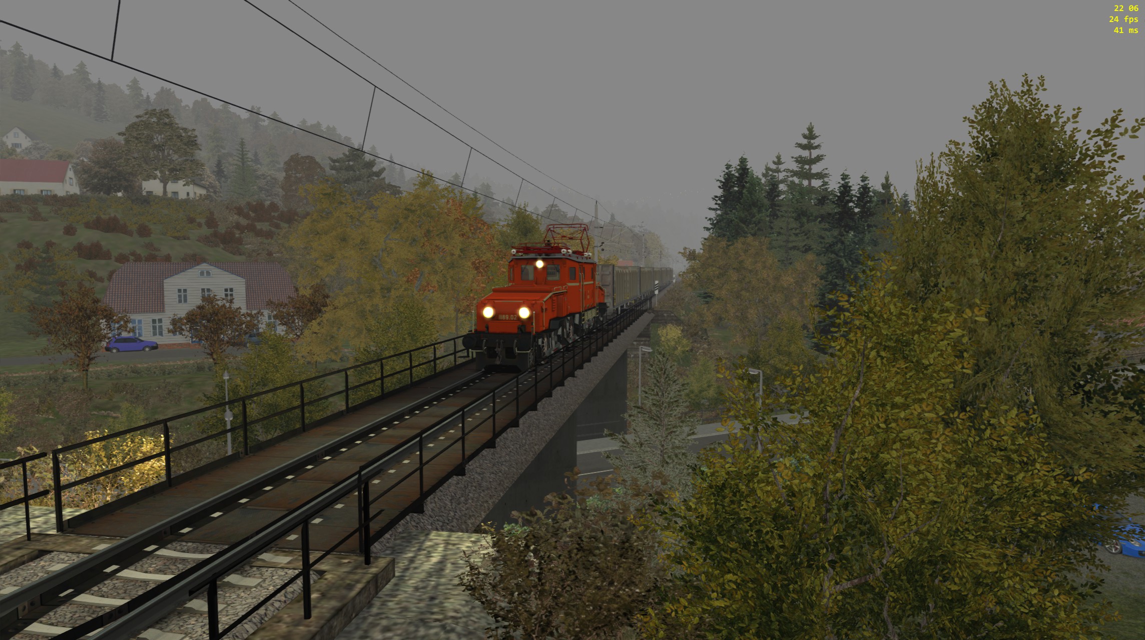 --> Wichtig dabei ist, dass die Umgebung herbstlich erscheint. Regenfälle, Wettereffekte oder ähnliches was sich mit dem Herbst in Verbindung setzen lässt. Der Screenshot muss aus dem Train Simulator 201x stammen.