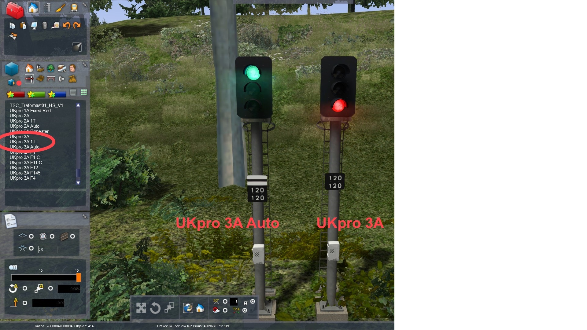 Die Geschwindigkeitsanzeiger und insbesondere die Geschwindigkeitsvoranzeiger sind aus der Ferne auch kaum erkennbar. So ein ähnliches Problem bestand bei den KS-Signalen von 143er in führeren Versionen auch mal; dort wurden die Anti-Aliasing-Einstellungen aus führende Ursache ausgeforscht und entsprechend die Texturen der Zahlen der Anzeiger angepasst.