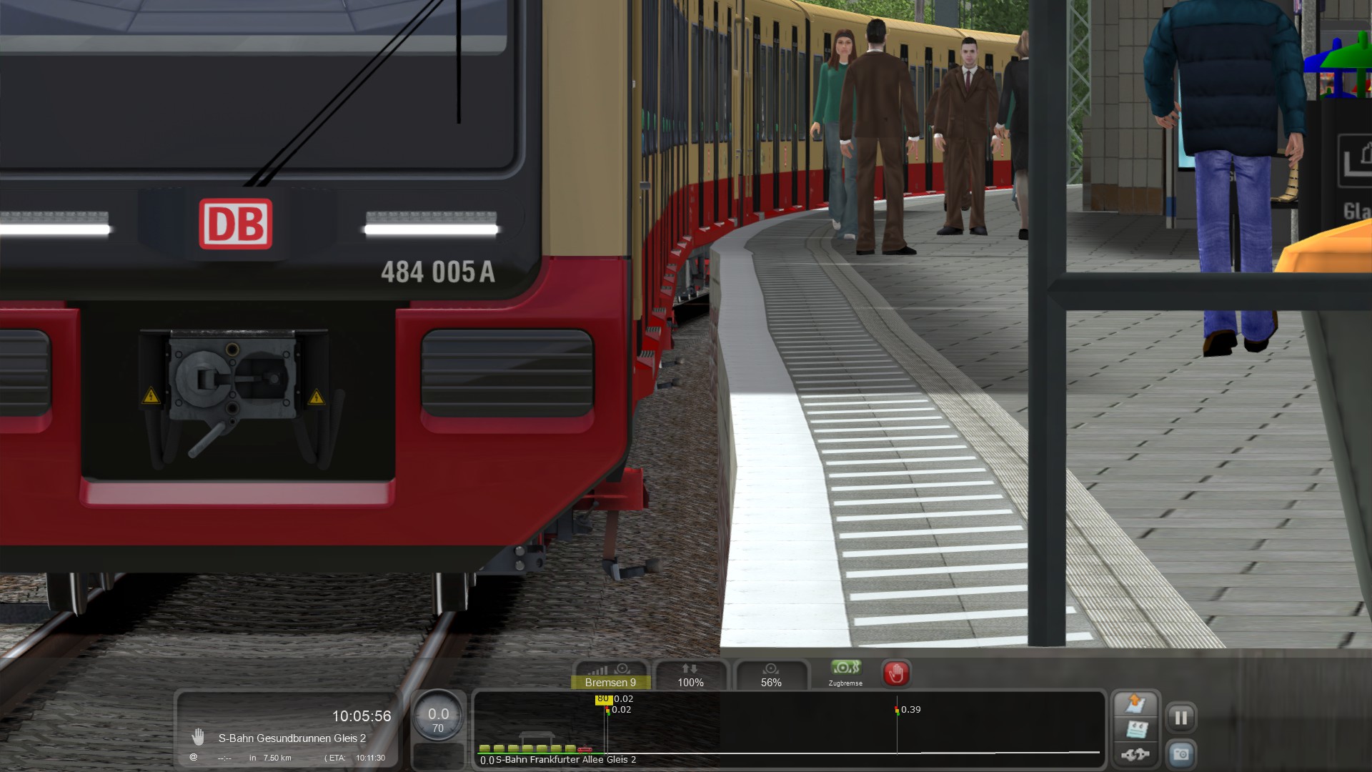 Neukölln: Das S-Bahn Gleis und das Fernbahngleis haben hier auch einen zu geringen Gleismittenabstand. Laut Google Earth Messung beträgt der hier ~4,50m im Bereich des S-Bahnsteiges Neukölln und geht dann auf ~5m Richtung Hermannstraße, indem das S-Bahn Gleis zwischen Weichenverbindung und Bahnsteig leicht verschwenkt wird. DIe Weichenverbindung hat in Realität Weichen mit 300er Radius. Ebenso erfolgt die Fahrt nach Köllnische Heide über den Abzweigenden Strang der Weichen ebenfalls mit 80 km/h befahren; das Signal 718 besitzt kein Zs3.