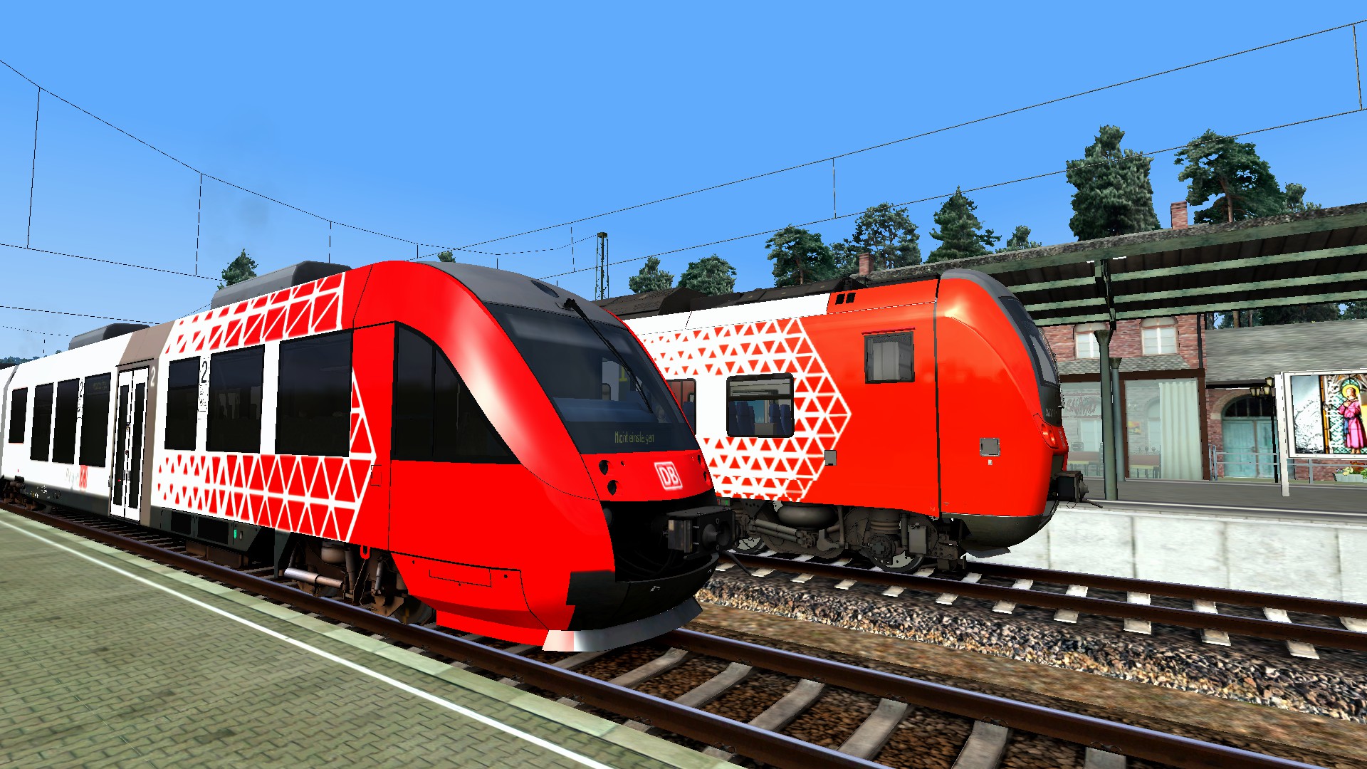 Der Regionalexpress nach Wildau trifft sich in Rudolf mit der Regionalbahn aus Heveen, beide im DB Regio Mitte Kleid. (Bild 1)