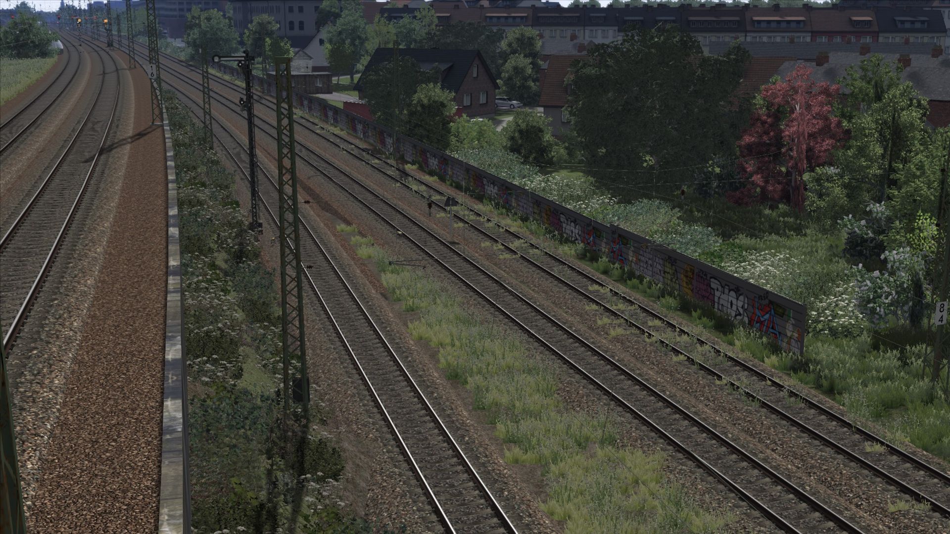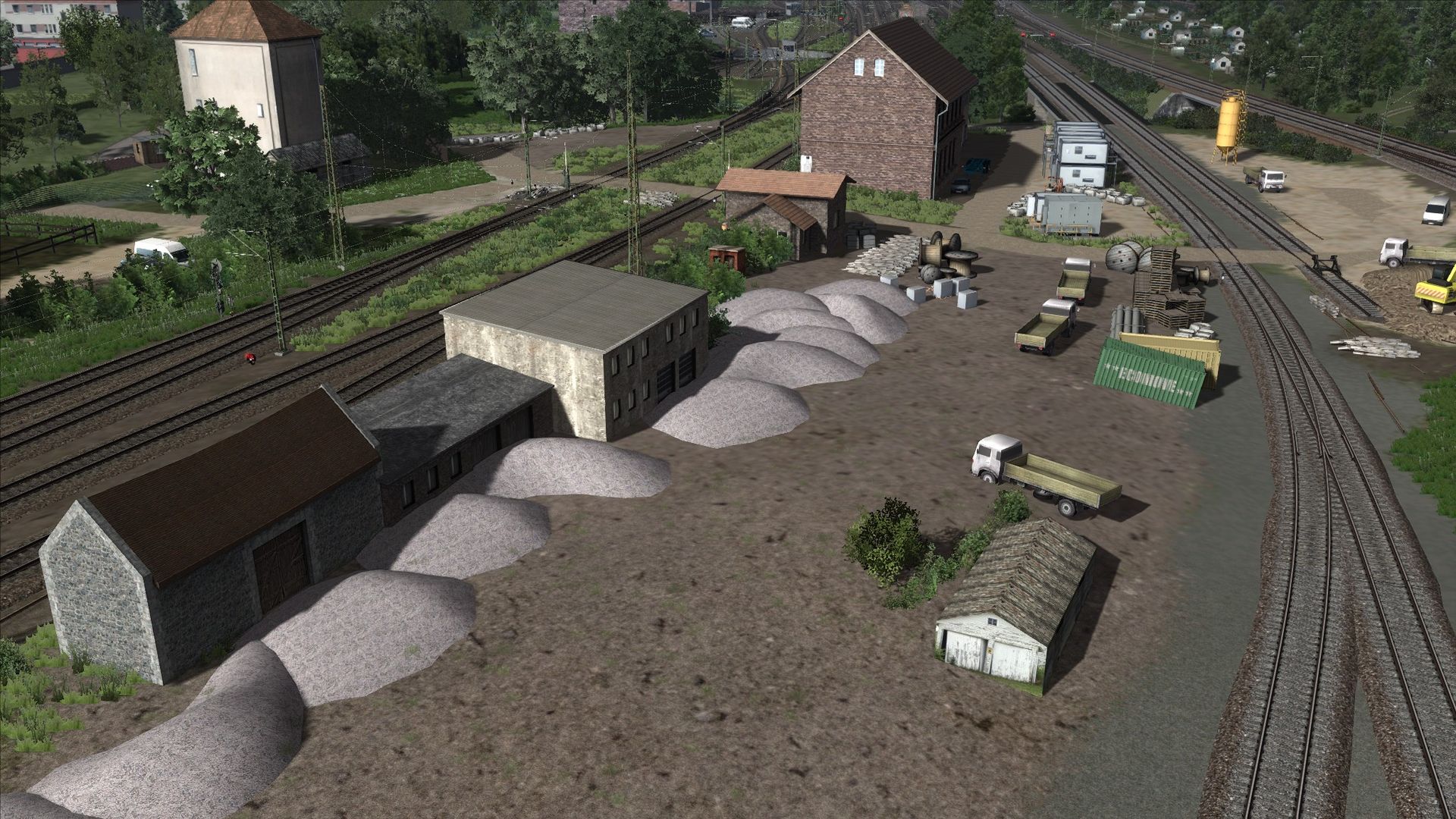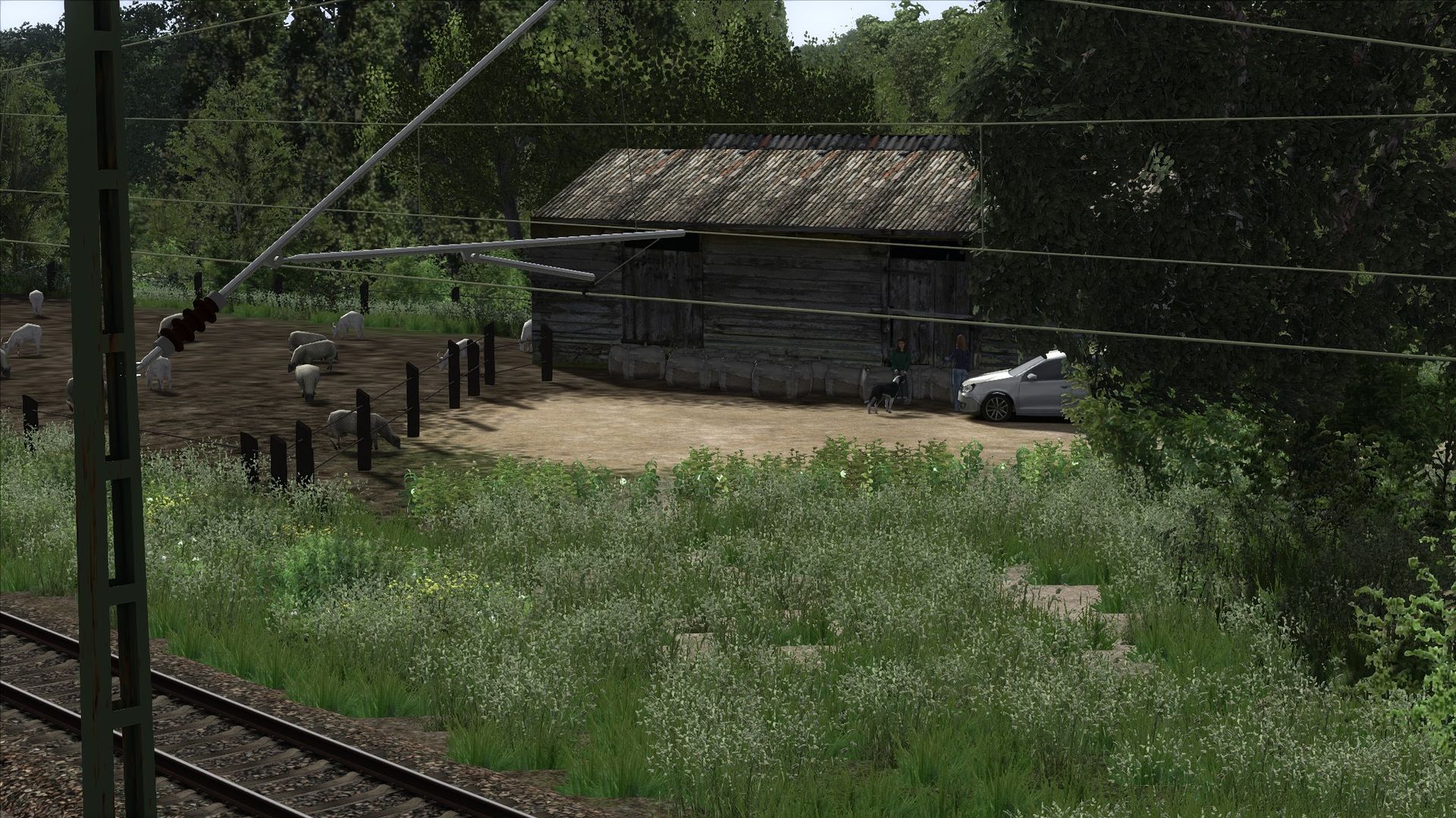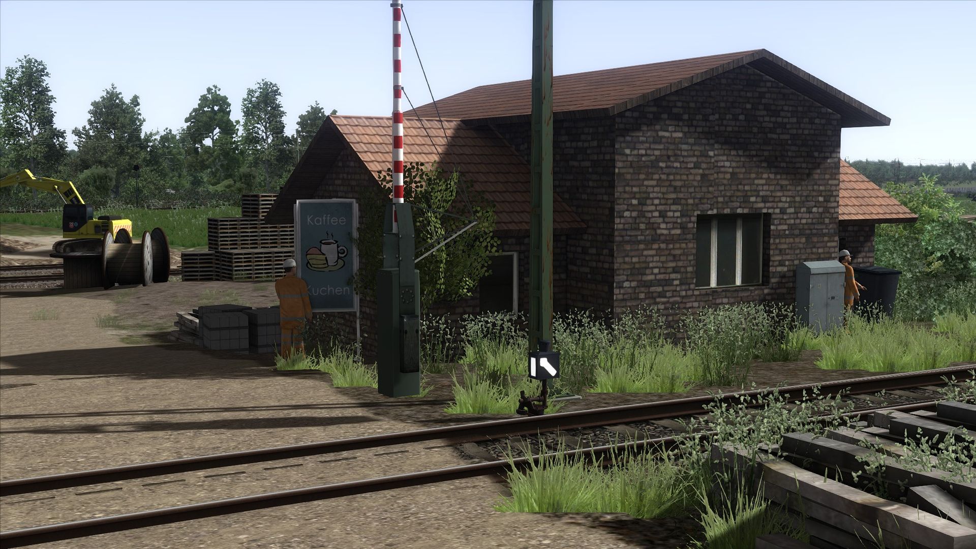 Ich habe Vegetation hinzugefügt, Zäune, ein paar Häuser an der ein oder anderen Stelle, sowie ein paar alte Gleise am Rand der Strecke ergänzt.