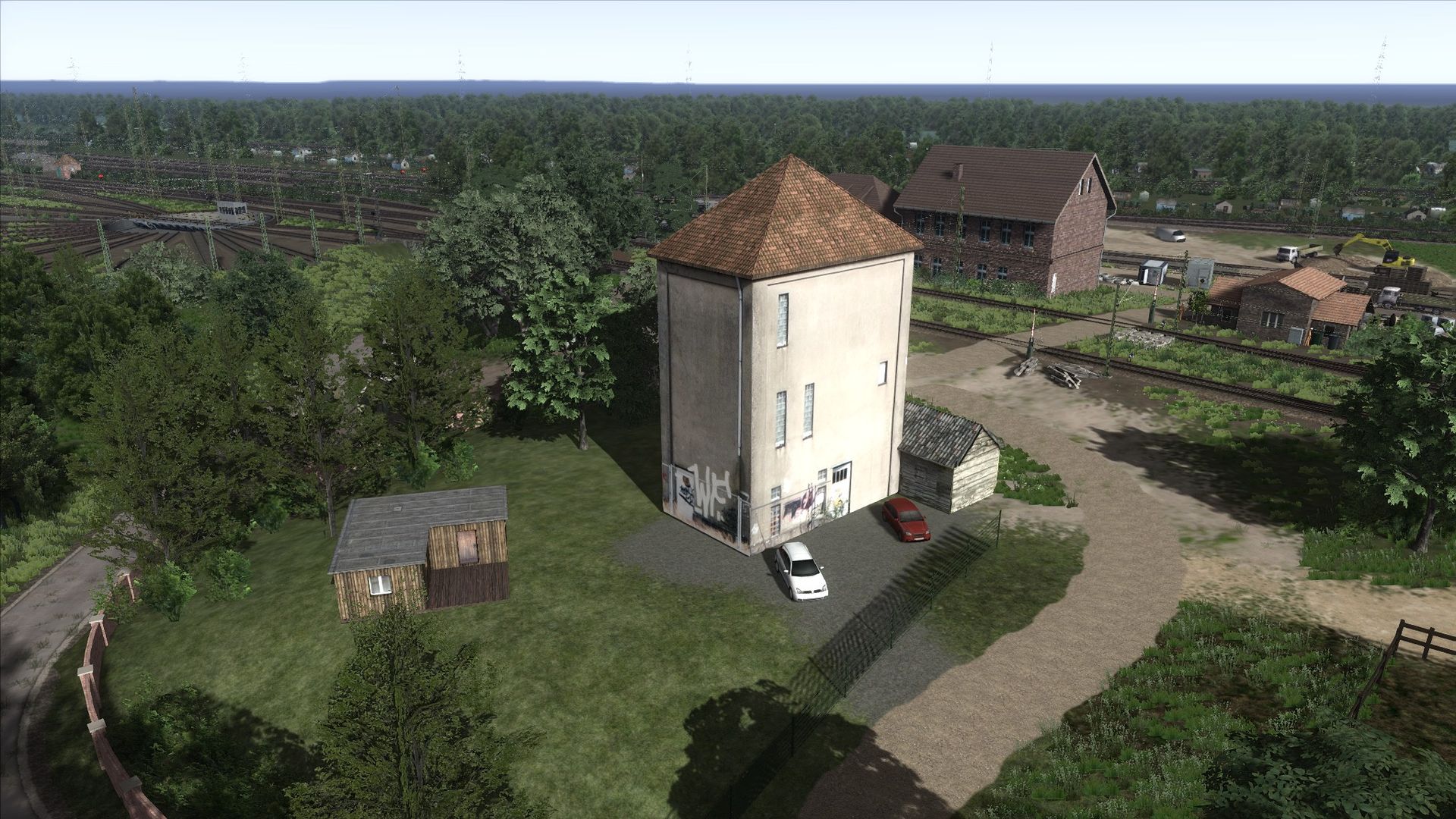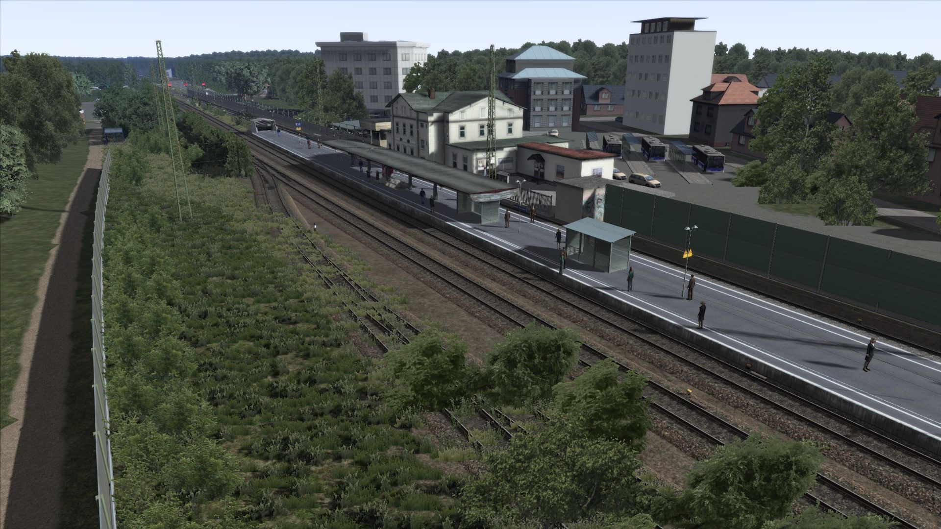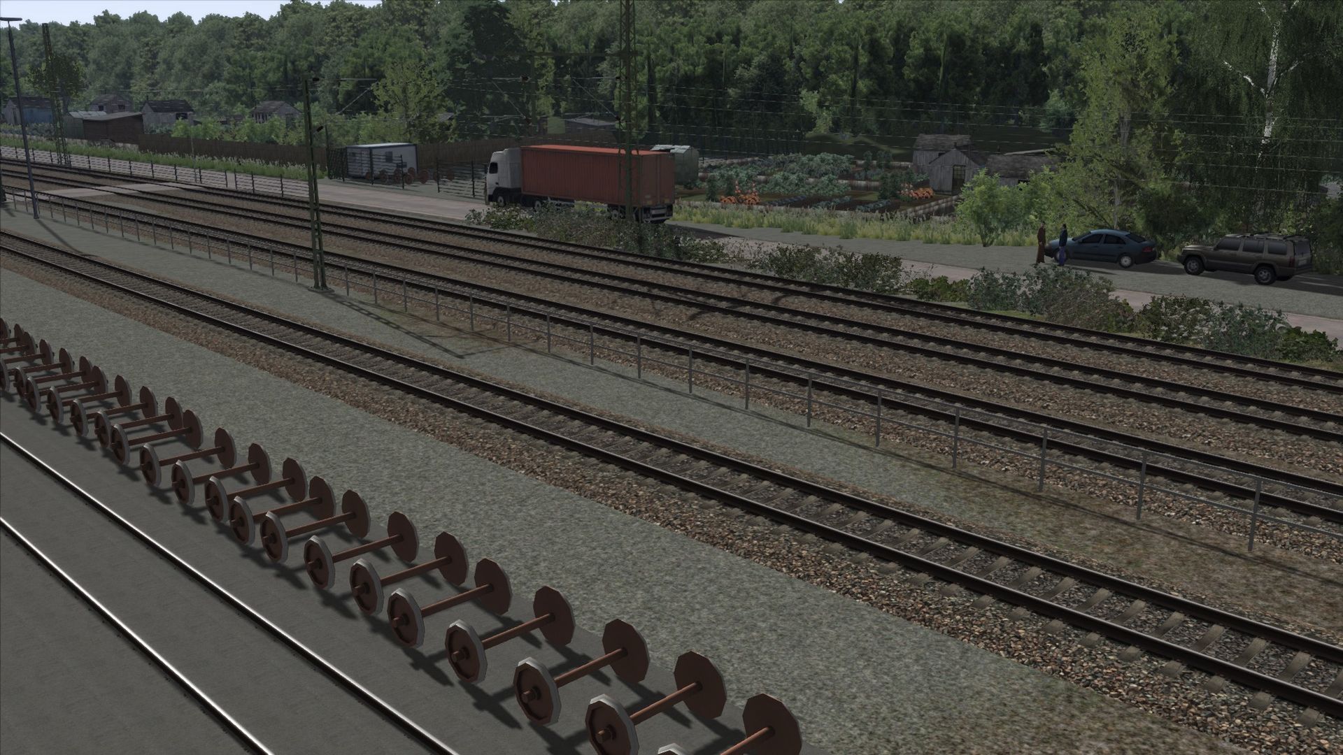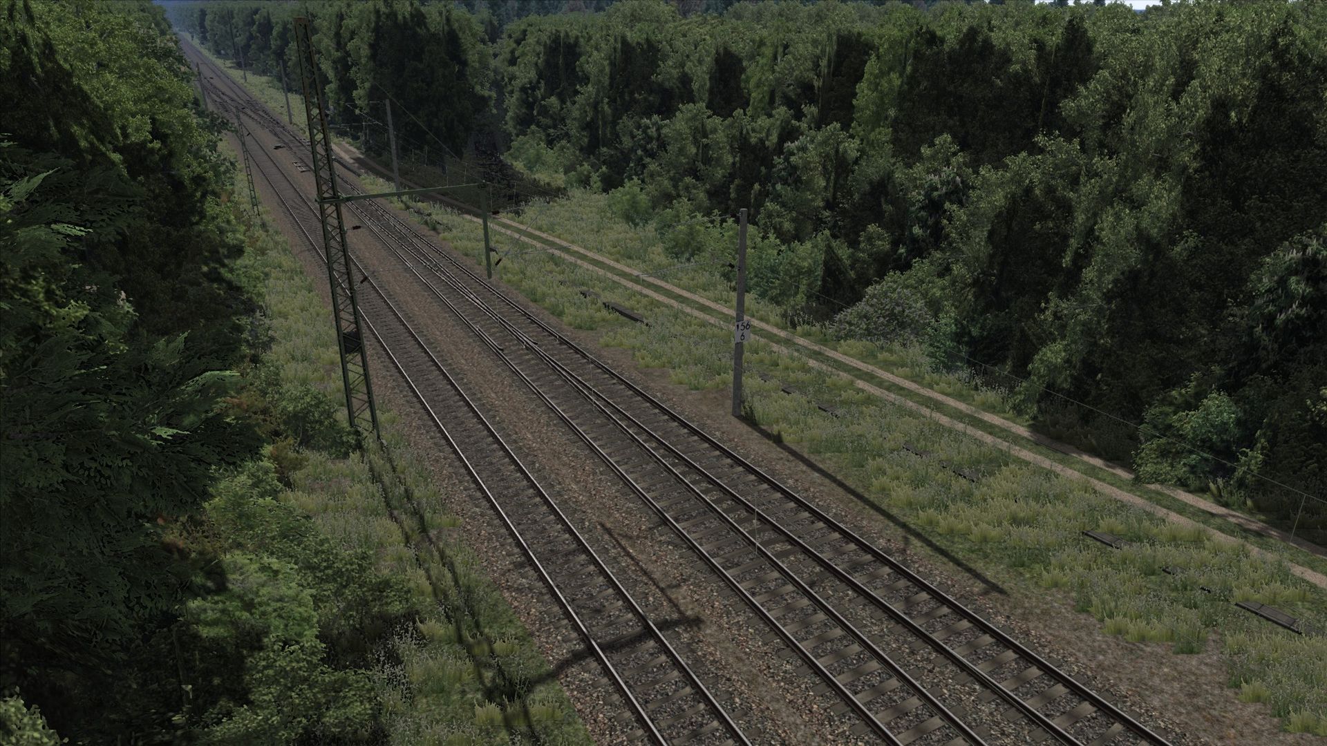 Ich habe Vegetation hinzugefügt, Zäune, ein paar Häuser an der ein oder anderen Stelle, sowie ein paar alte Gleise am Rand der Strecke ergänzt.