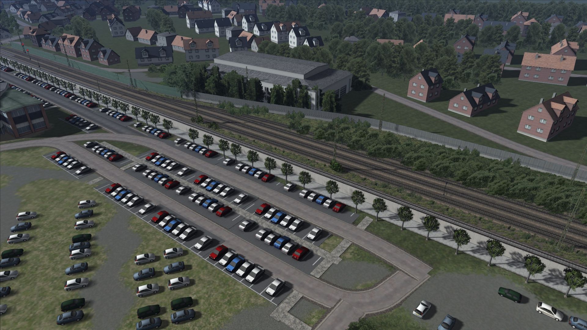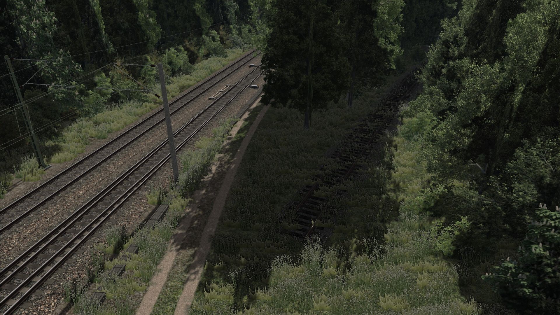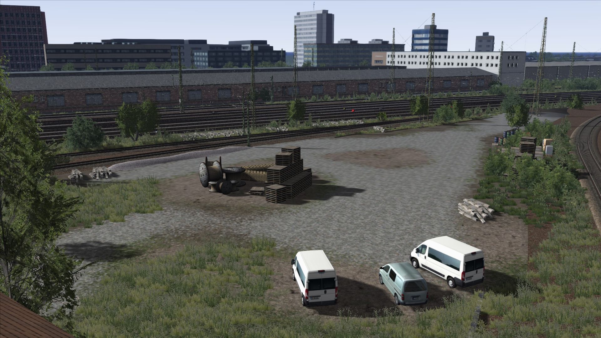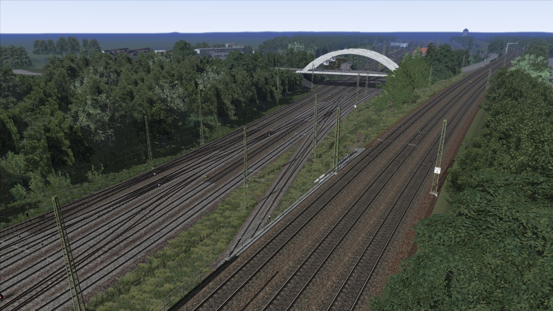 Ich habe Vegetation hinzugefügt, Zäune, ein paar Häuser an der ein oder anderen Stelle, sowie ein paar alte Gleise am Rand der Strecke ergänzt.