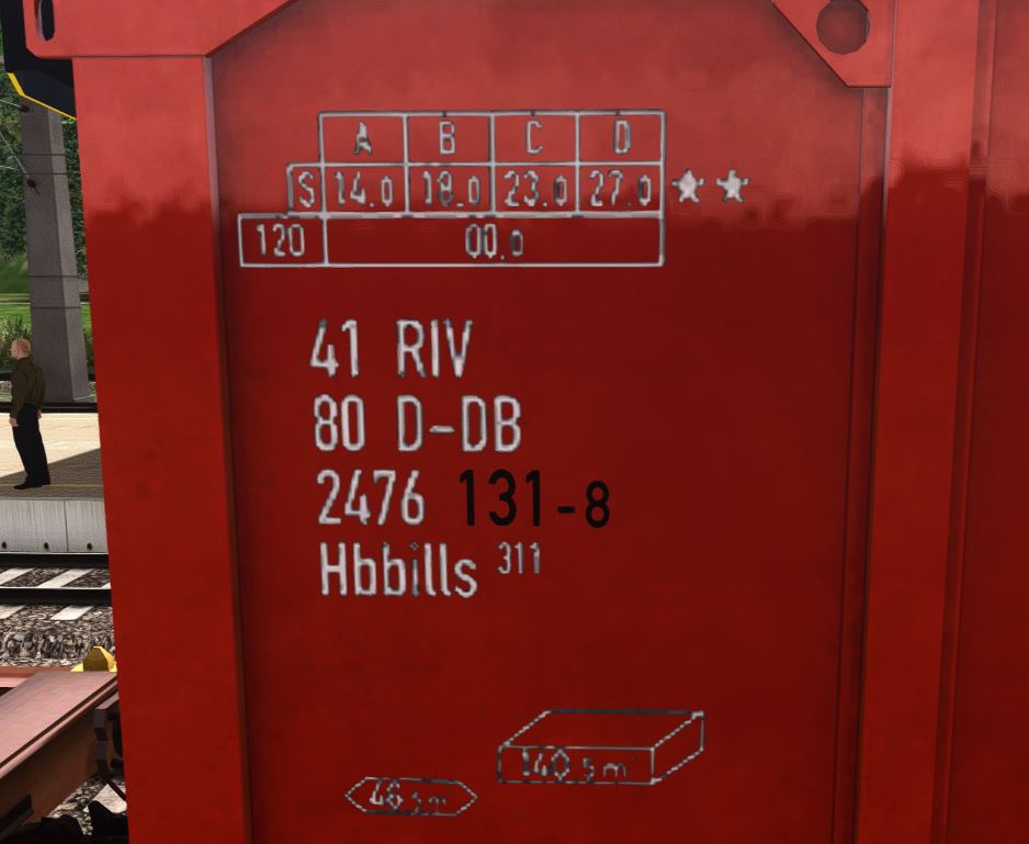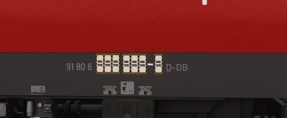 Irgendwie wird bei mir die Lok Nummer nicht angezeigt, bei denn Wagen habe ich ebenfalls irgendwelche Missing Texture und sieht generell sehr komisch aus und das Schwarze Piktogramm gehört in Weiß, ebenso die schwarze Schrift, sonst ein Top Paket!