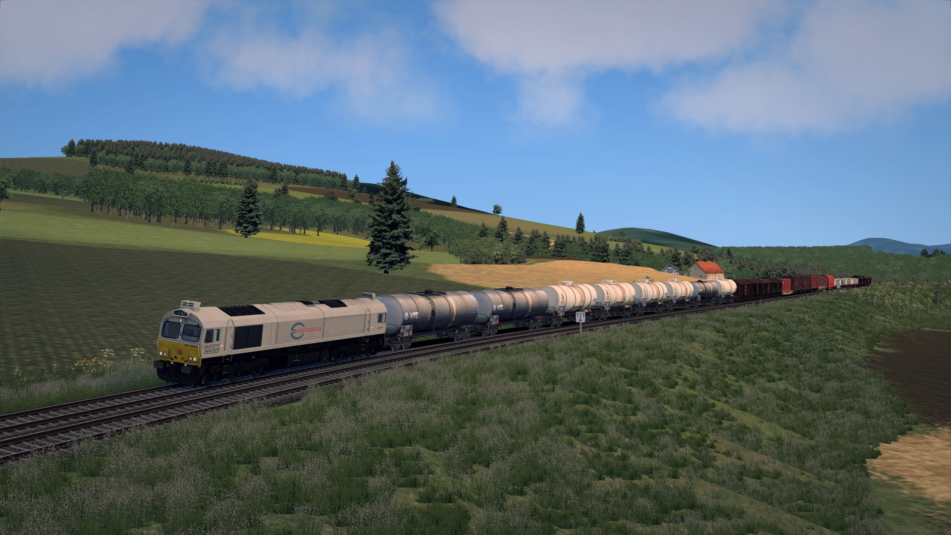 Arlbergumleiter mit Class 77 durchs Allgäu und ein Autogüterzug mit PRESS BR 155 auf der Strecke "Projekt Roter Knopf".