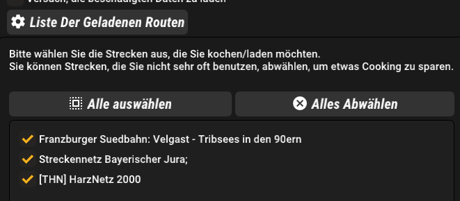 wir haben ein Problem mit einer Route in RWE2. Die RWA Strecke Geseusebahn erscheint nicht bei der Routenwahl. Sie erscheint beim Kochen in der Drop Down Liste Loaded Routes aber lässt sich sonst nirgends finden. Sie hat keine .ap zu entpacken, die Route Properties.xml ist vorhanden. In TS Tools ist sie anfangs auch nicht erschienen, aber nach ausführen von "index route properties" gelöst.