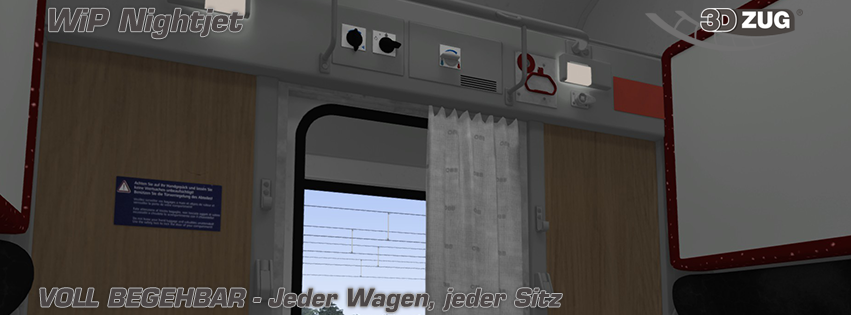 Die Innenansicht des Bcmz Wagen, in der Tag und Nachtvariante mit umgeklappten Betten in 2er und 3er Konstellation.