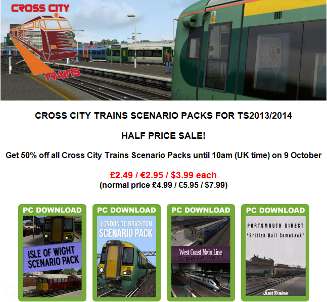 CROSS CITY TRAINS SCENARIO PACKS FOR TS2013/2014 HALF PRICE SALE!