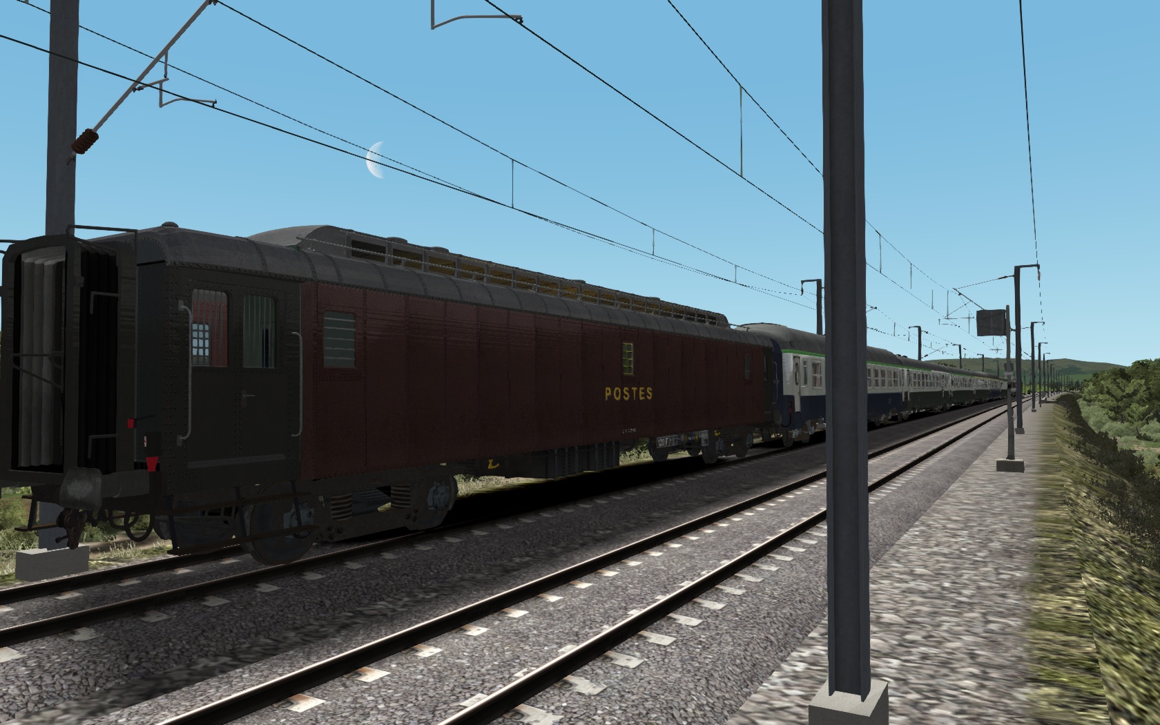 ..auf der Schnellfahrstrecke Marseille-Avignon-mal ohne TGV--ob der alte Postwagen mit dem Tempo mitkommt?