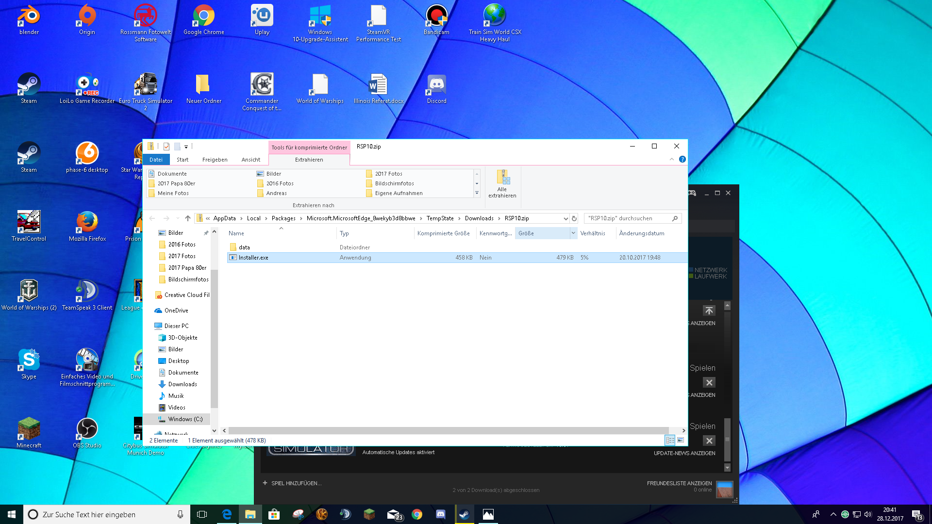 Ich habe bei der ZIP datei auf extrahieren geklickt, jetzt muss ich auswählen wo es gespeichert werden soll.