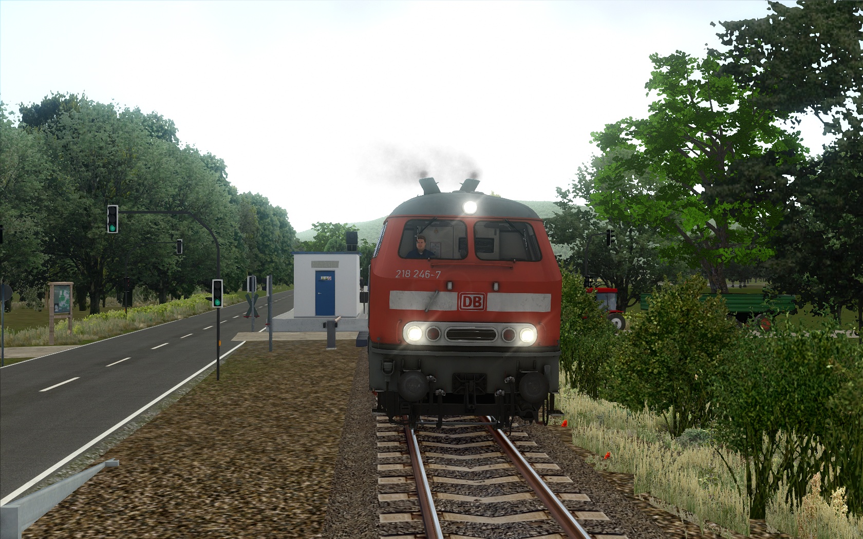 Um die Performance zu schonen, steht ab 50 m hinterm Gleis die RLB Vegetation.