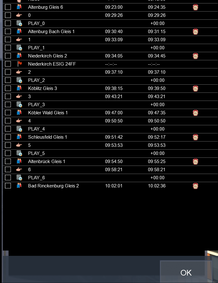 Spielerzug aus Altenburg kommend fährt in Bad Rinkenburg Gleis 2. Lässt der Dispatcher alles zu, wenn ich jetzt die Entstation für den Zug eintrage, meckert er.