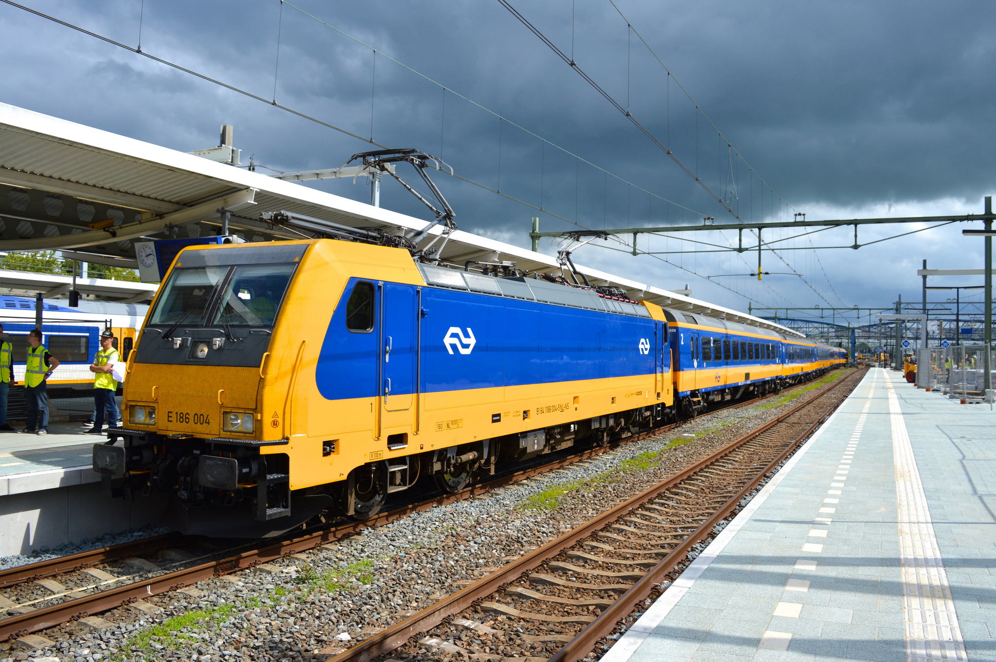 Max traction effort and max braking: The Intercity Direct runs in "Sandwich" mode, so that means one locomotive in front, in the mid you have the carriages and then the last locomotive, two locomotives gives 2x the power.