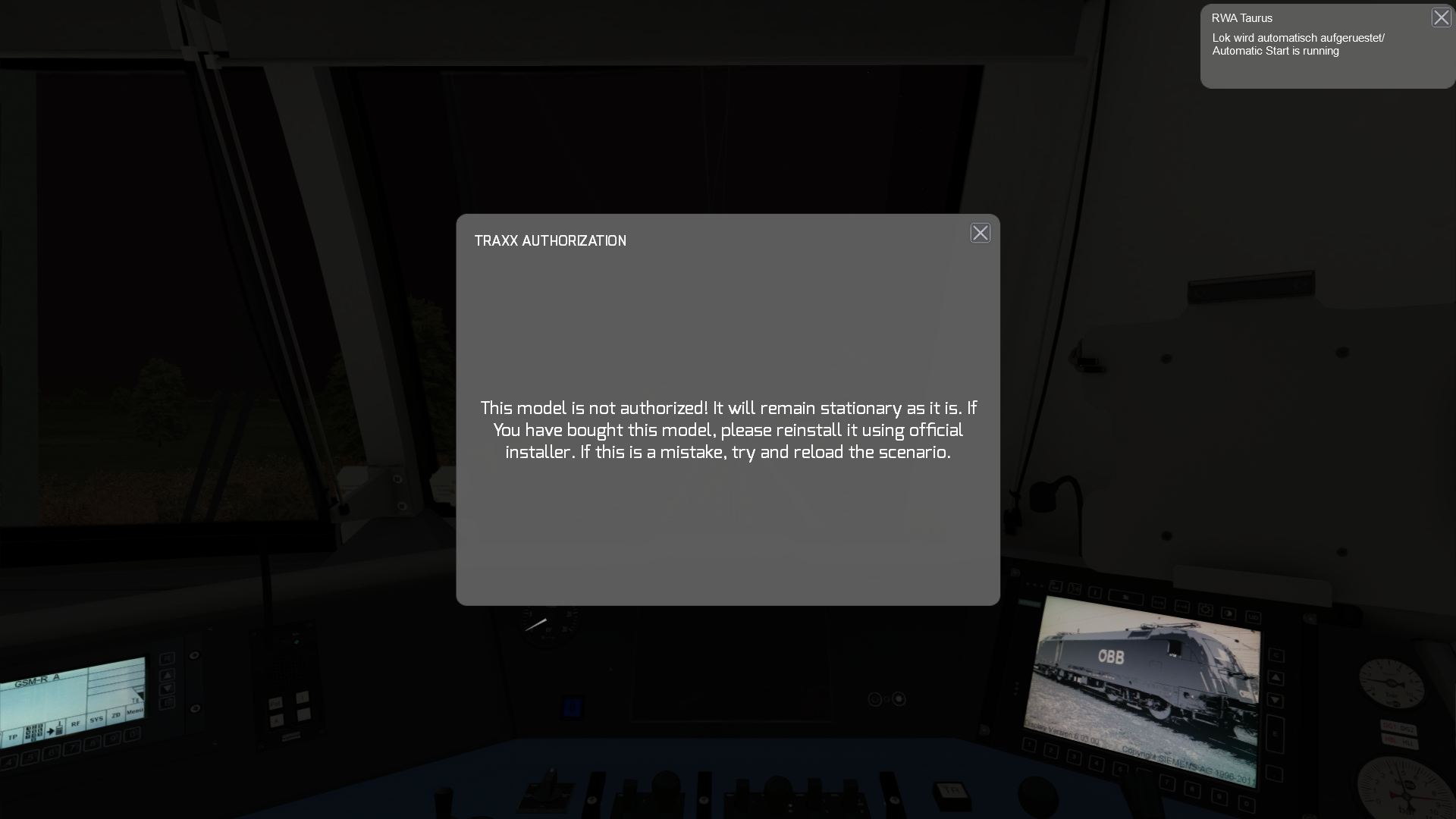 Seit kurzem wird mir bei manchen Szenarien eingeblendet, dass mir eine "Traxx-Autroization" fehlen soll.
