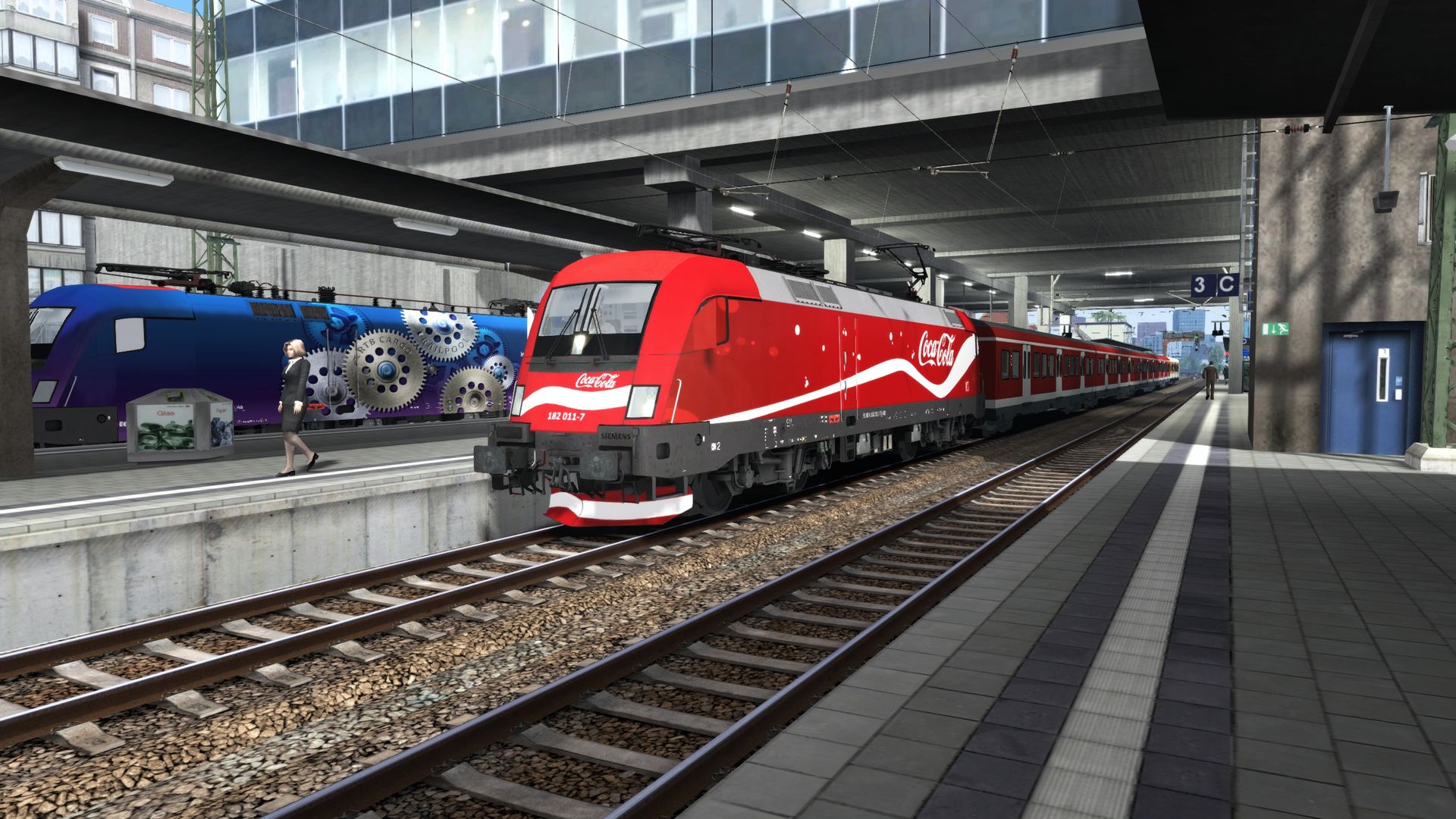 Zu sehen ist 182 011-7 Mit Coke Werbung (fiktiv) mit einer X Wagen Garnitur als S1 nach Köblitz