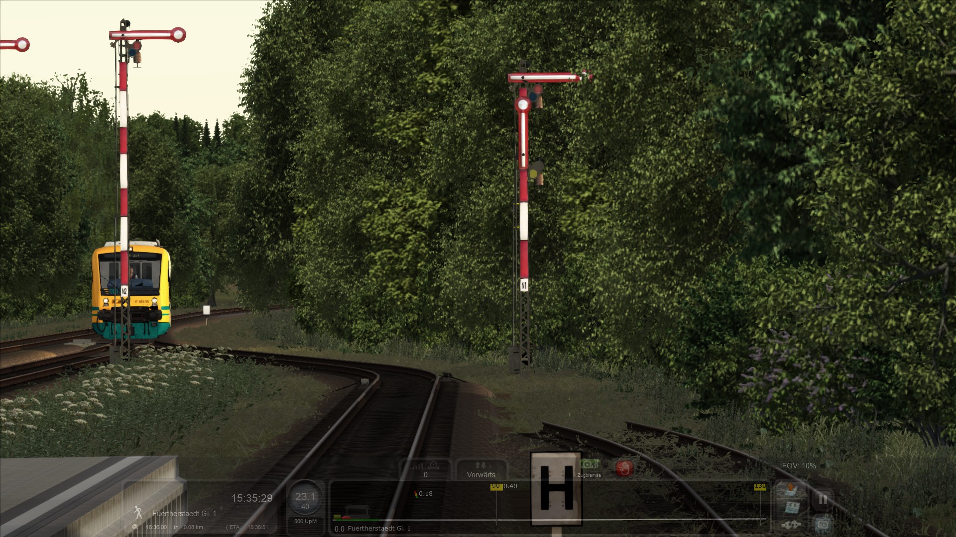 Bei Einfahrt Fürtherstädt, zeigt Vorsignal Langsam Fahrt erwarten an