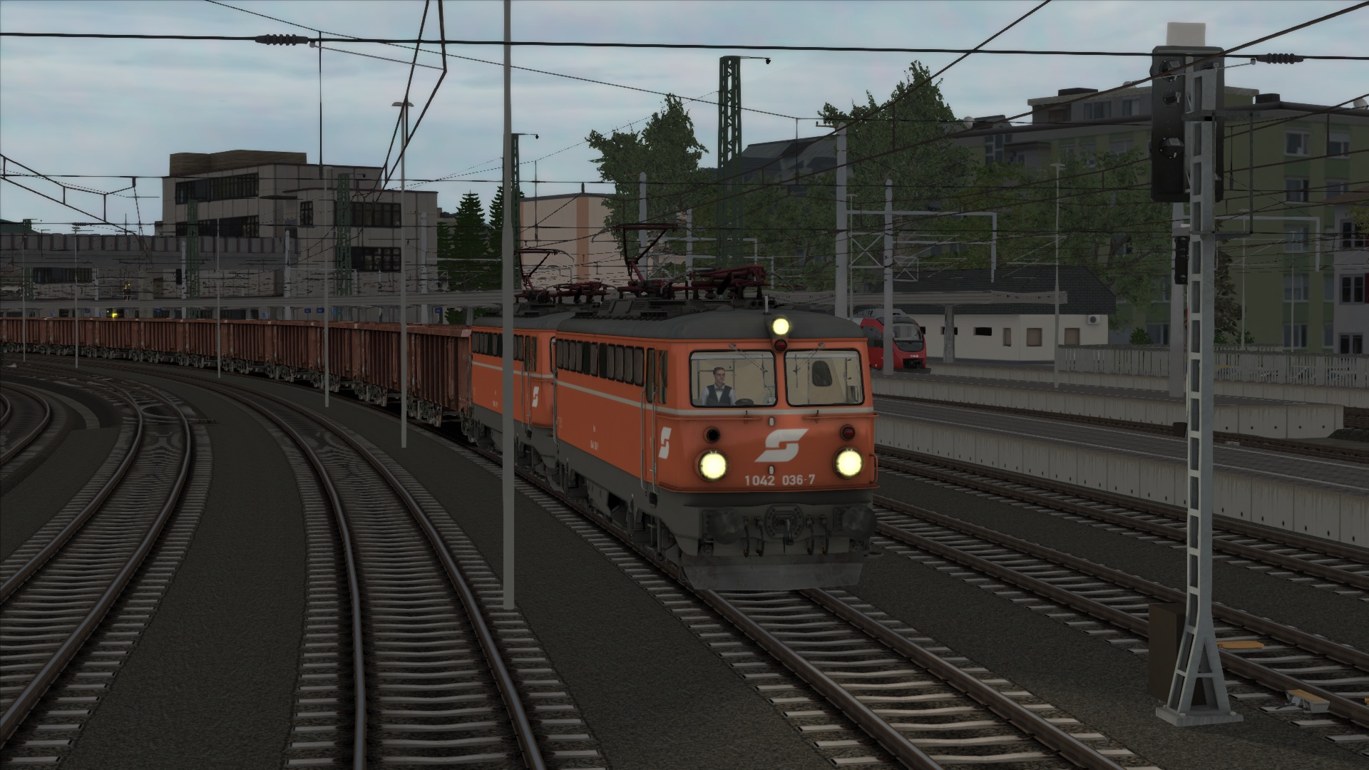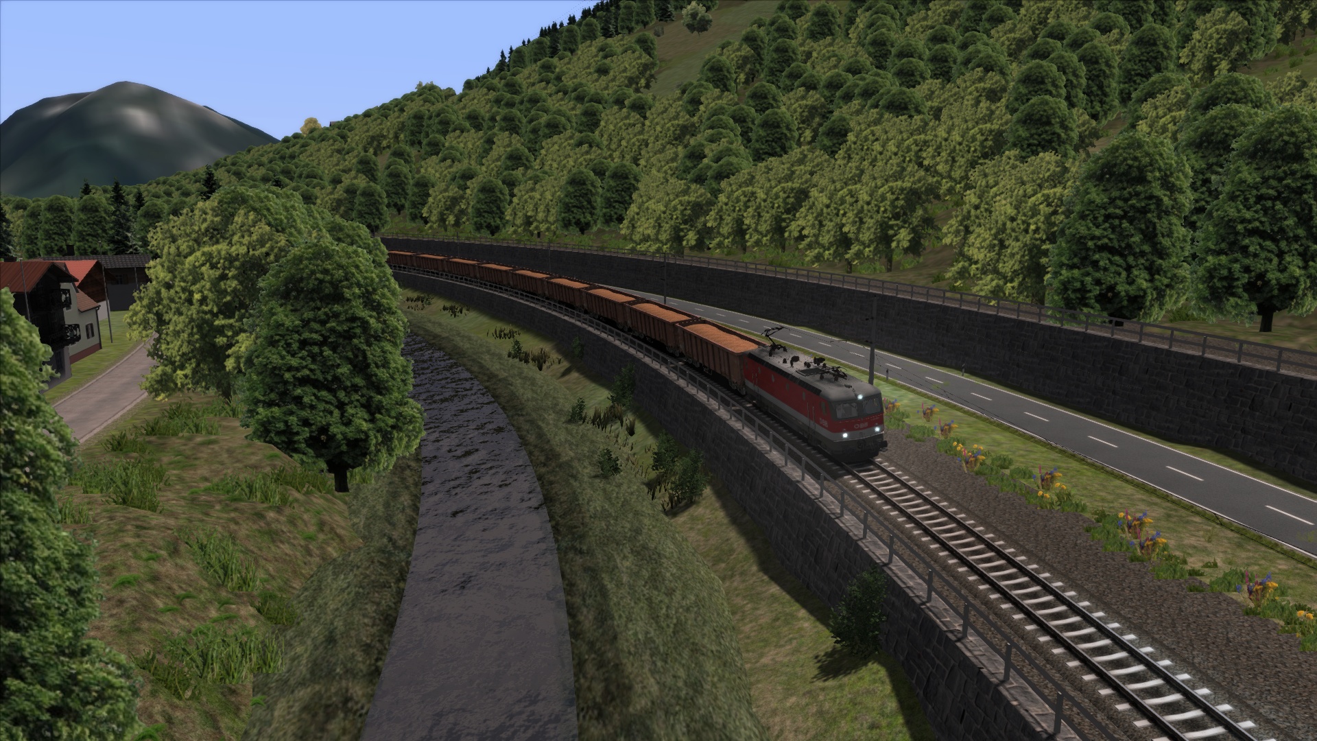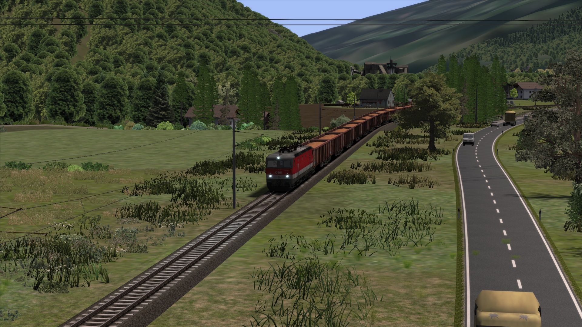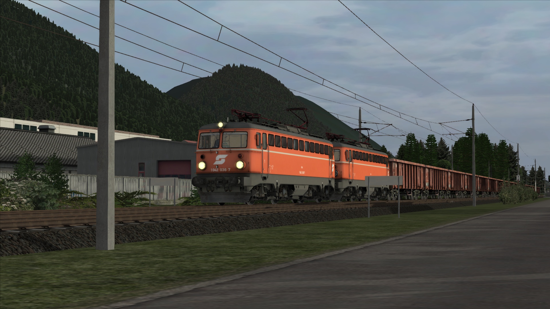 Mit der ÖBB Rh 1042 dem Brenner hinauf. Szenario OBB 1042 Brenner Zug, Personenwagen sind getauscht.