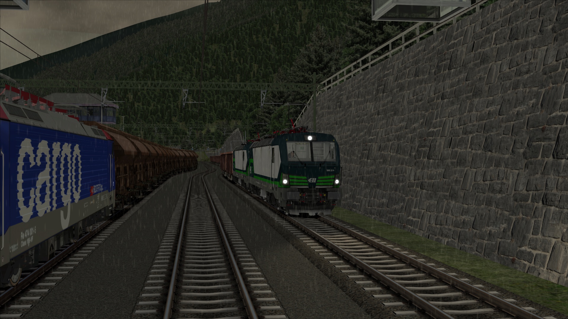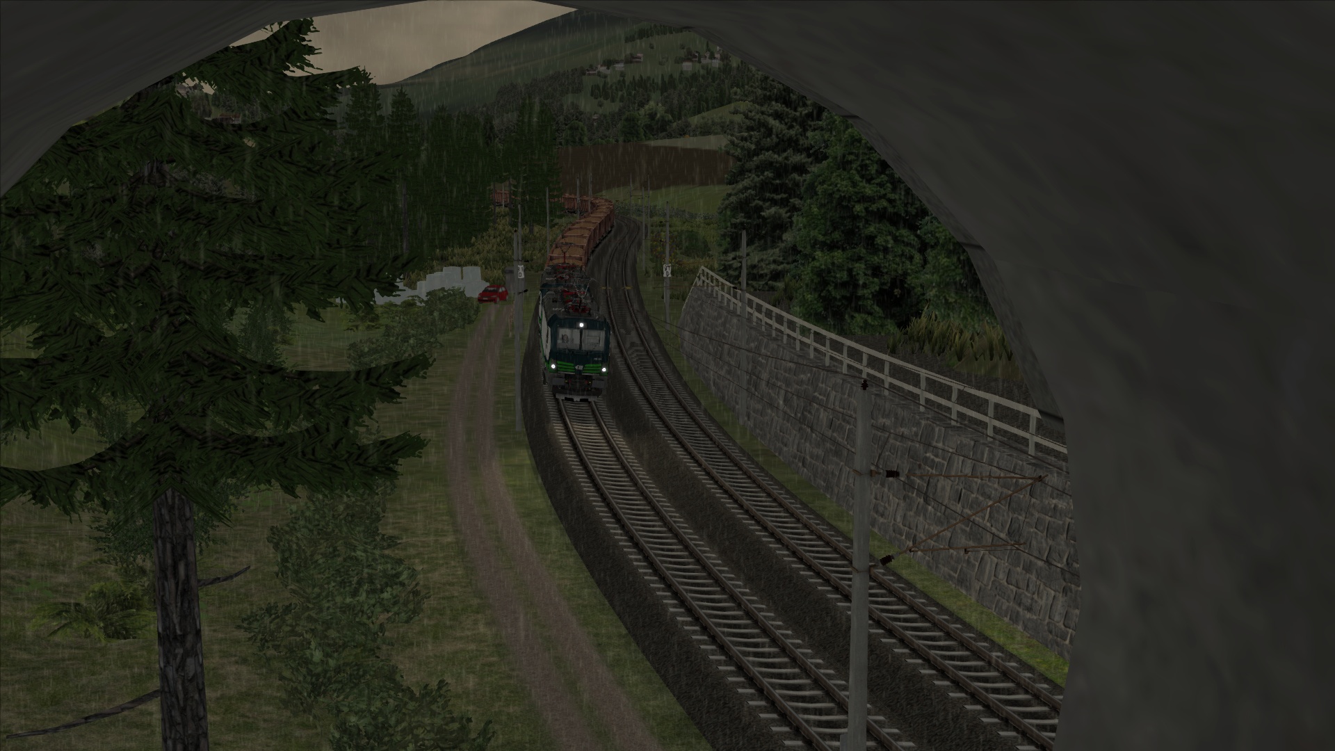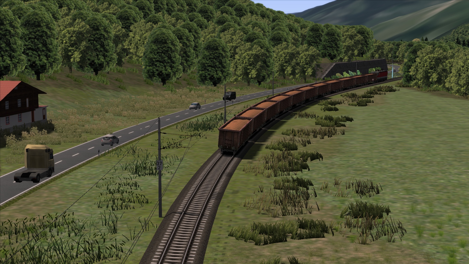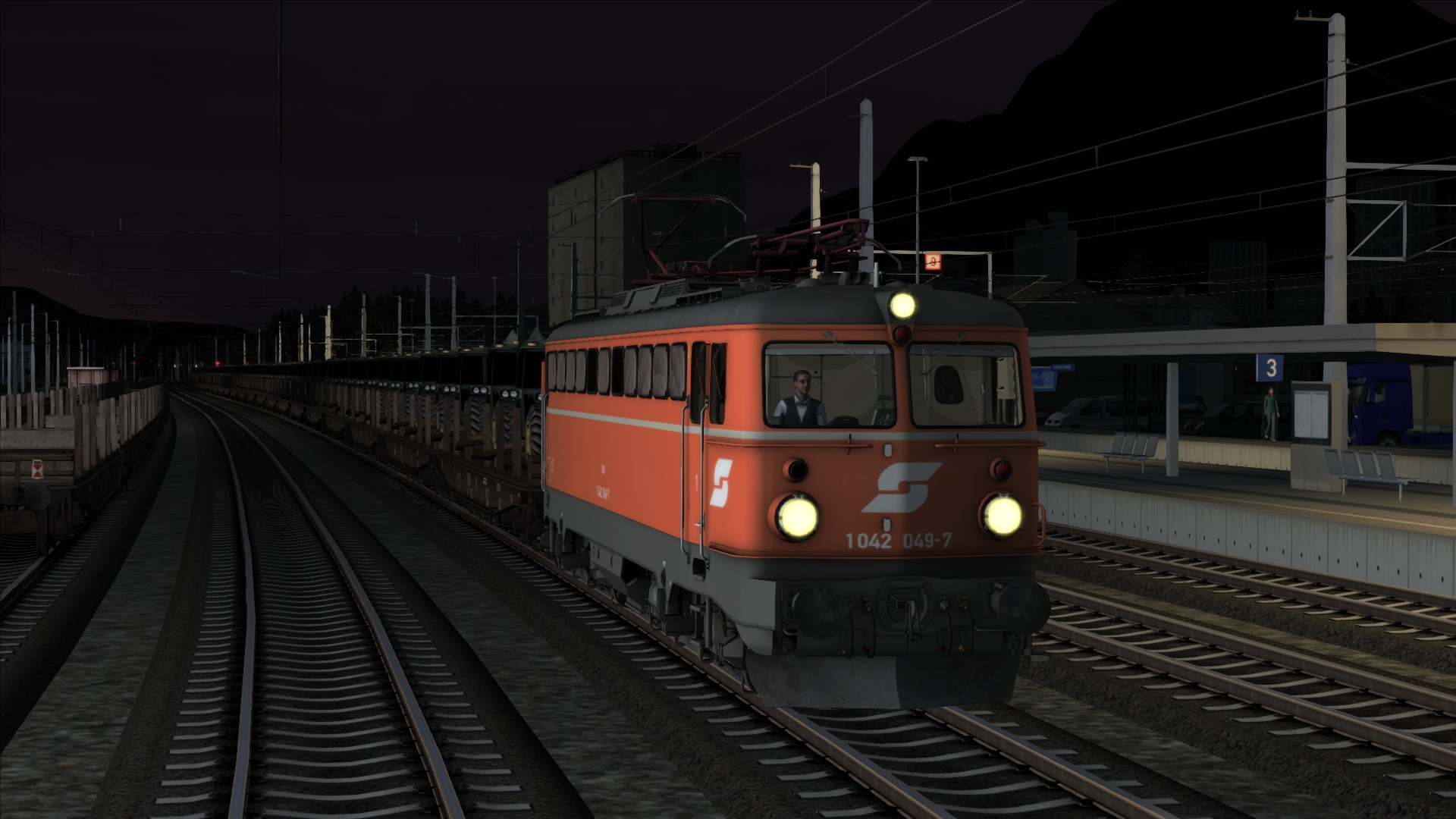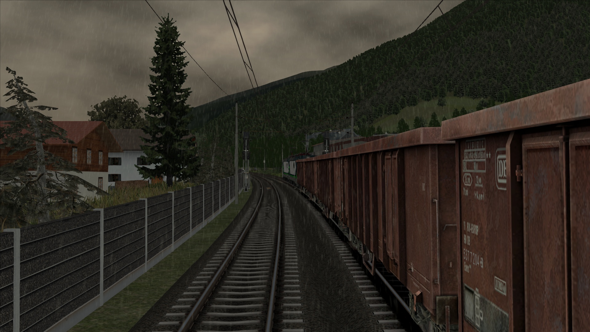 Mit der ÖBB Rh 1042 dem Brenner hinauf. Szenario OBB 1042 Brenner Zug, Personenwagen sind getauscht.