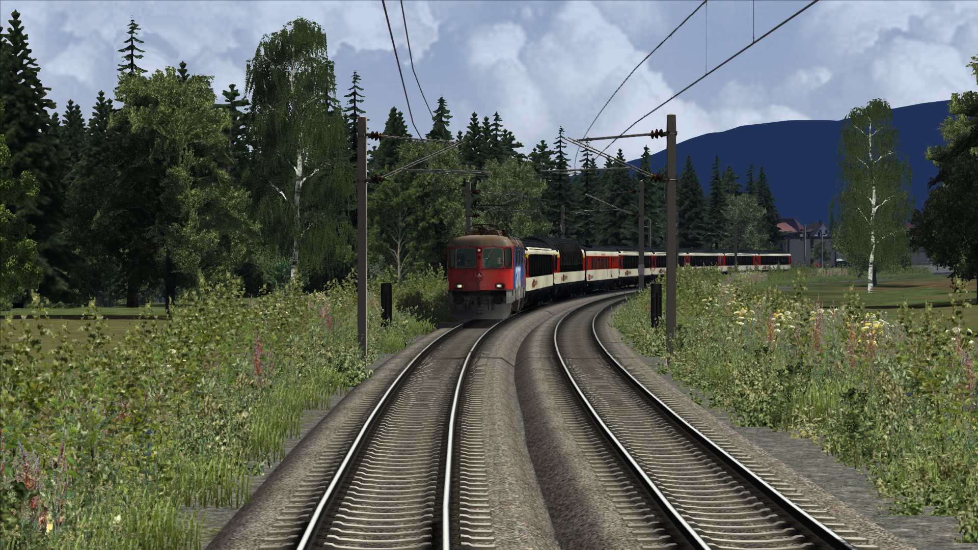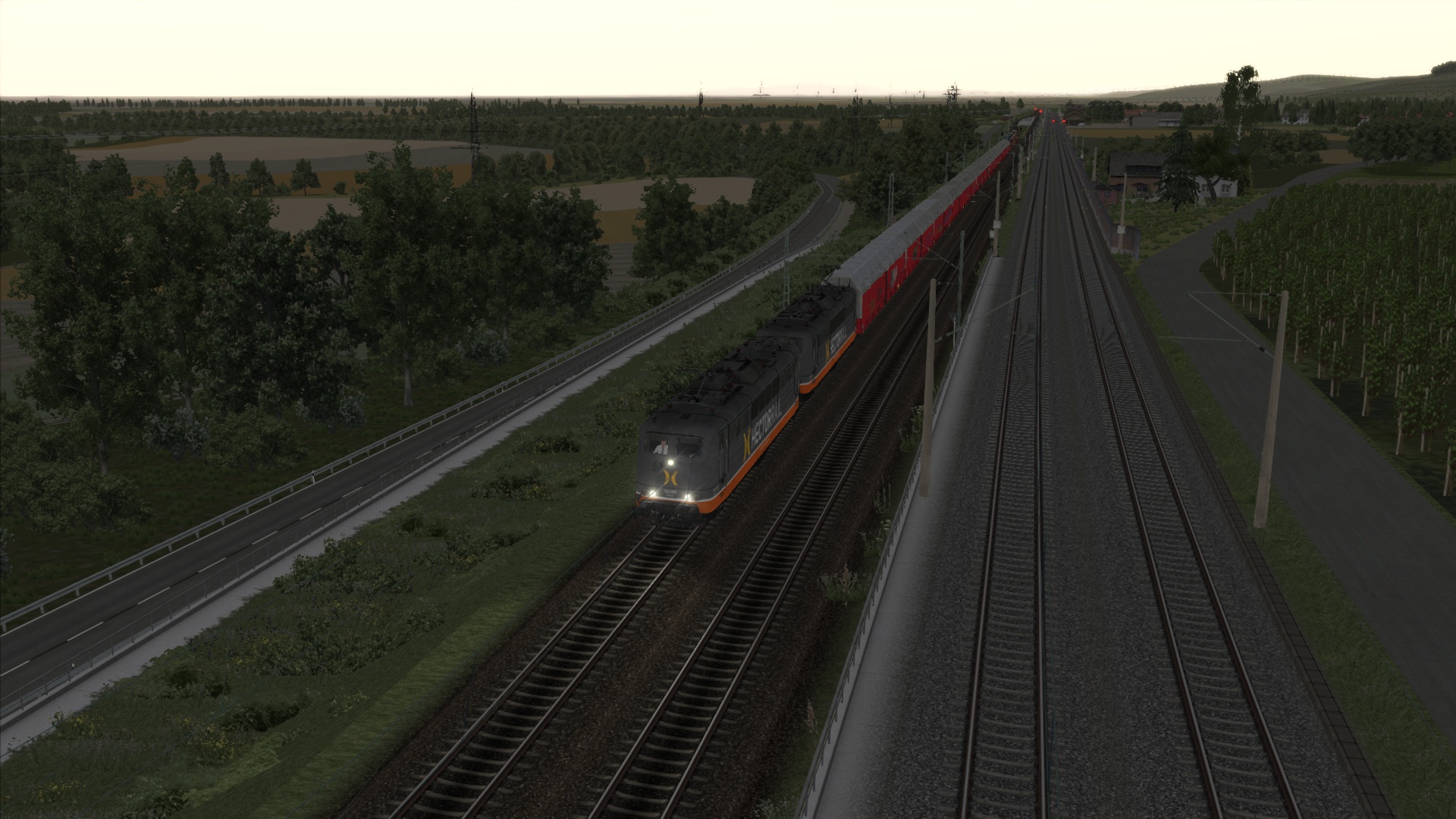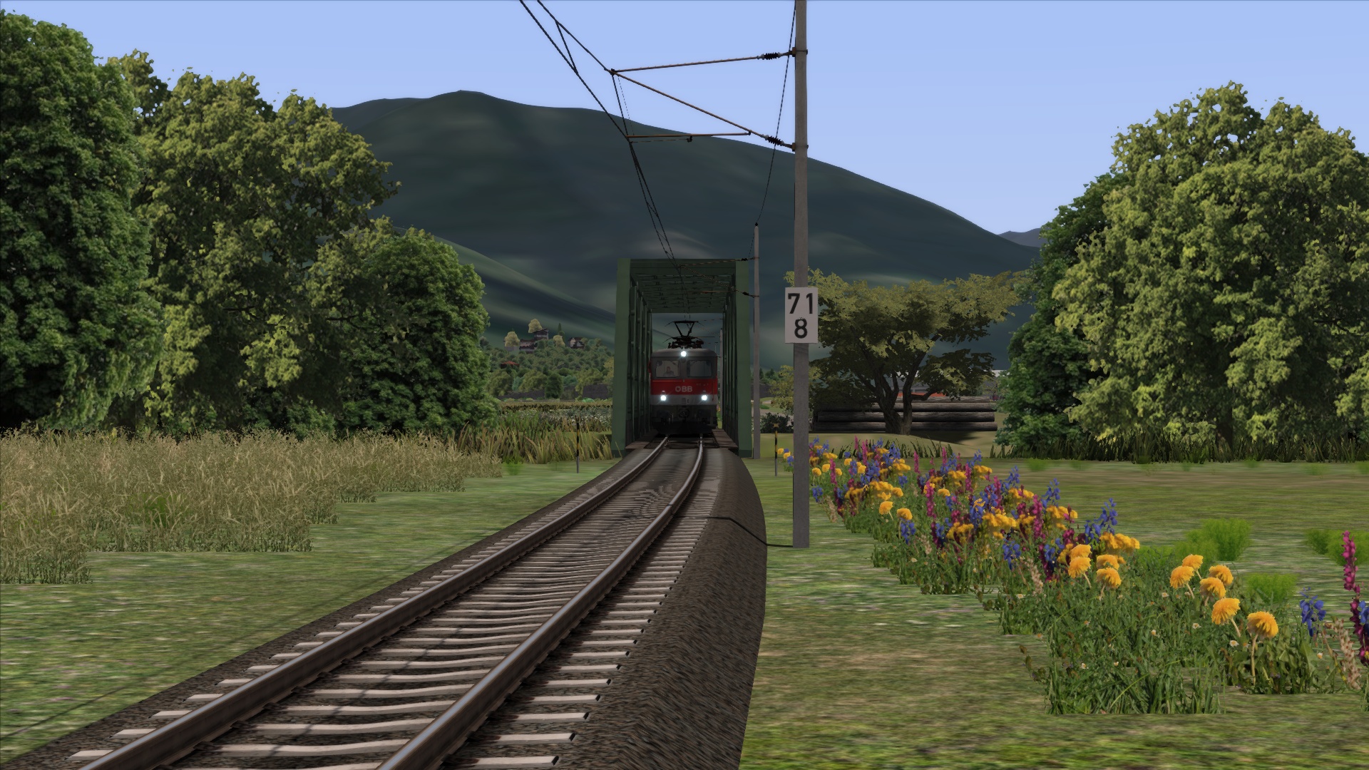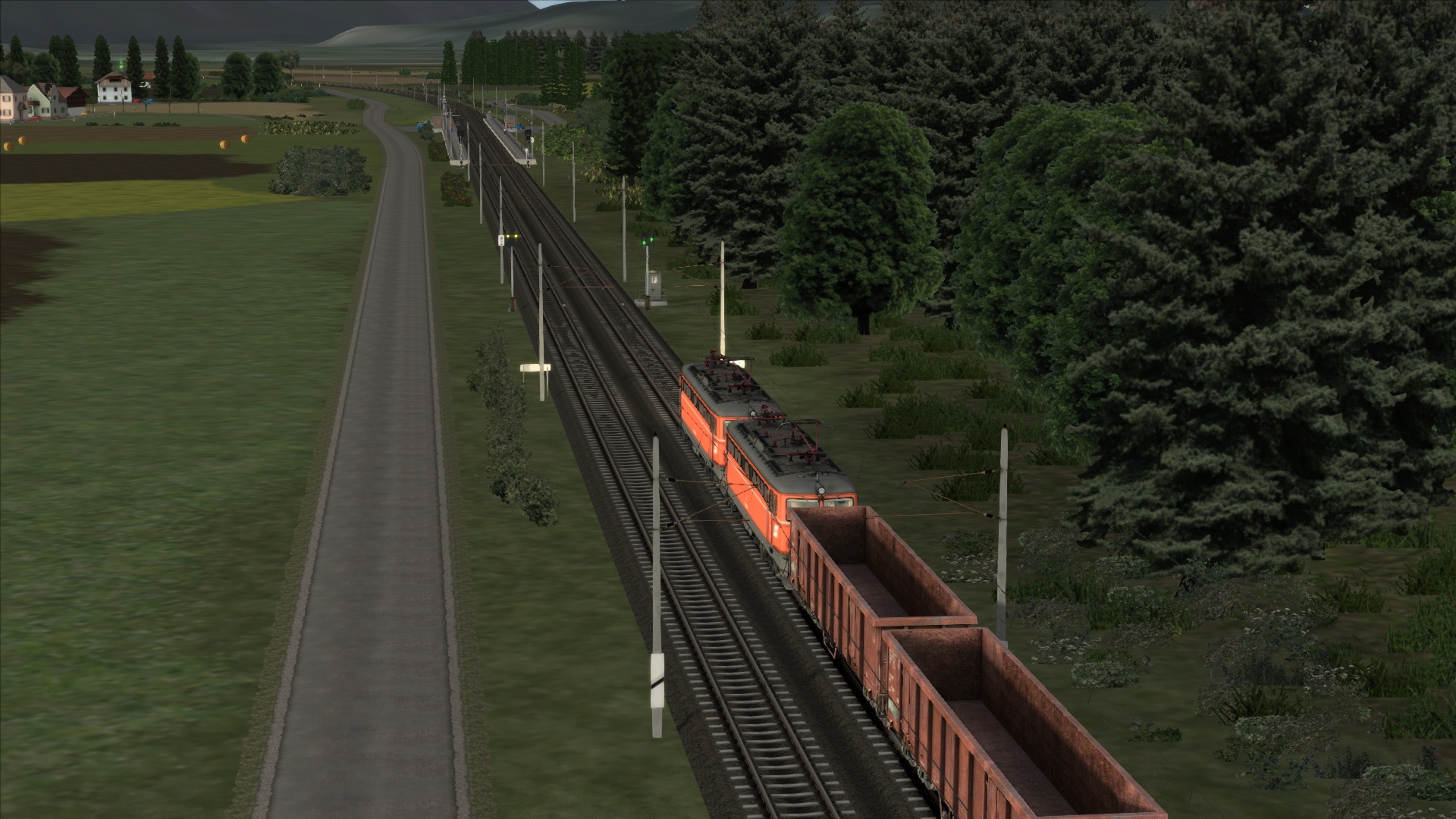 Mit der ÖBB Rh 1042 dem Brenner hinauf. Szenario OBB 1042 Brenner Zug, Personenwagen sind getauscht.