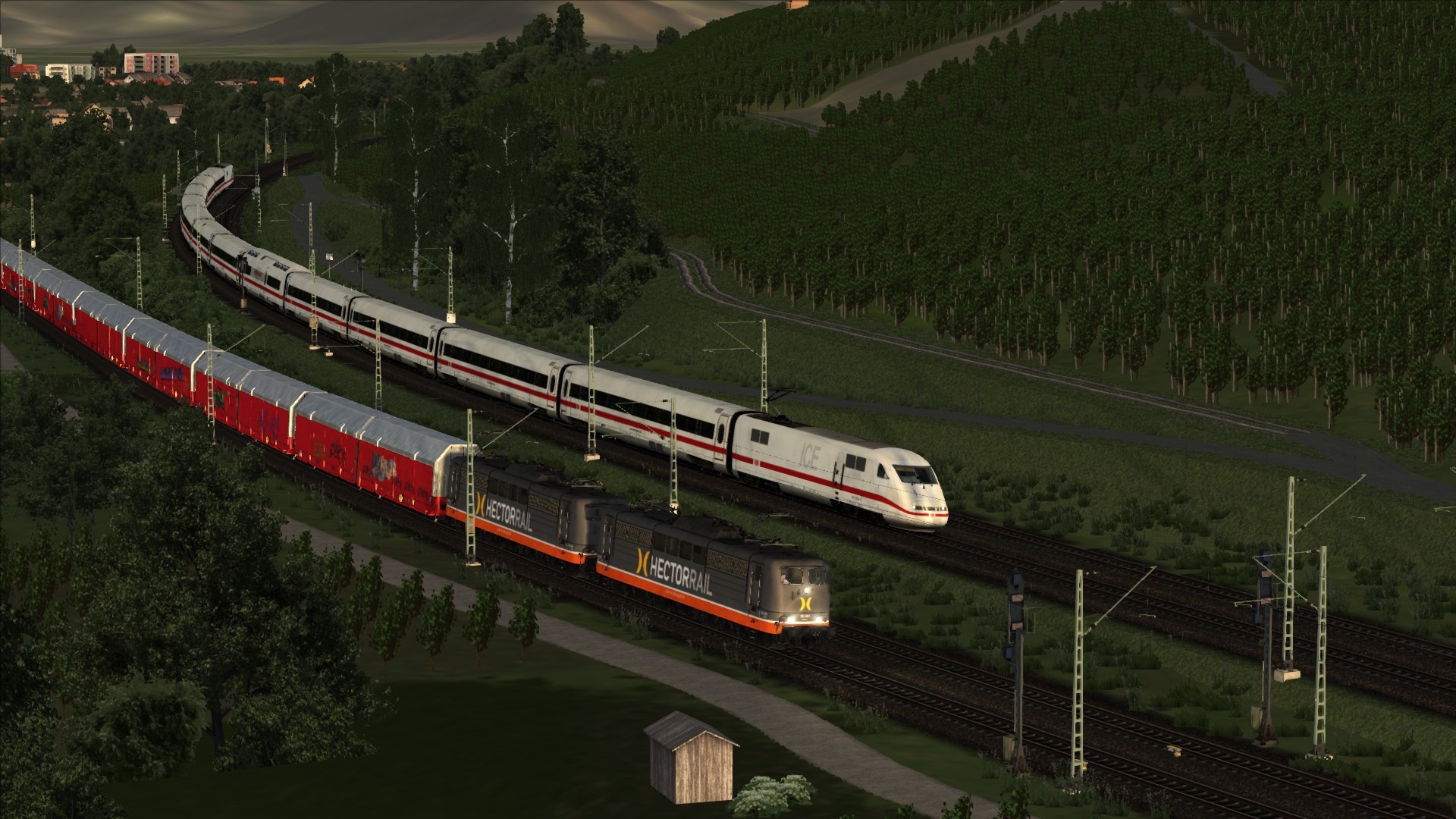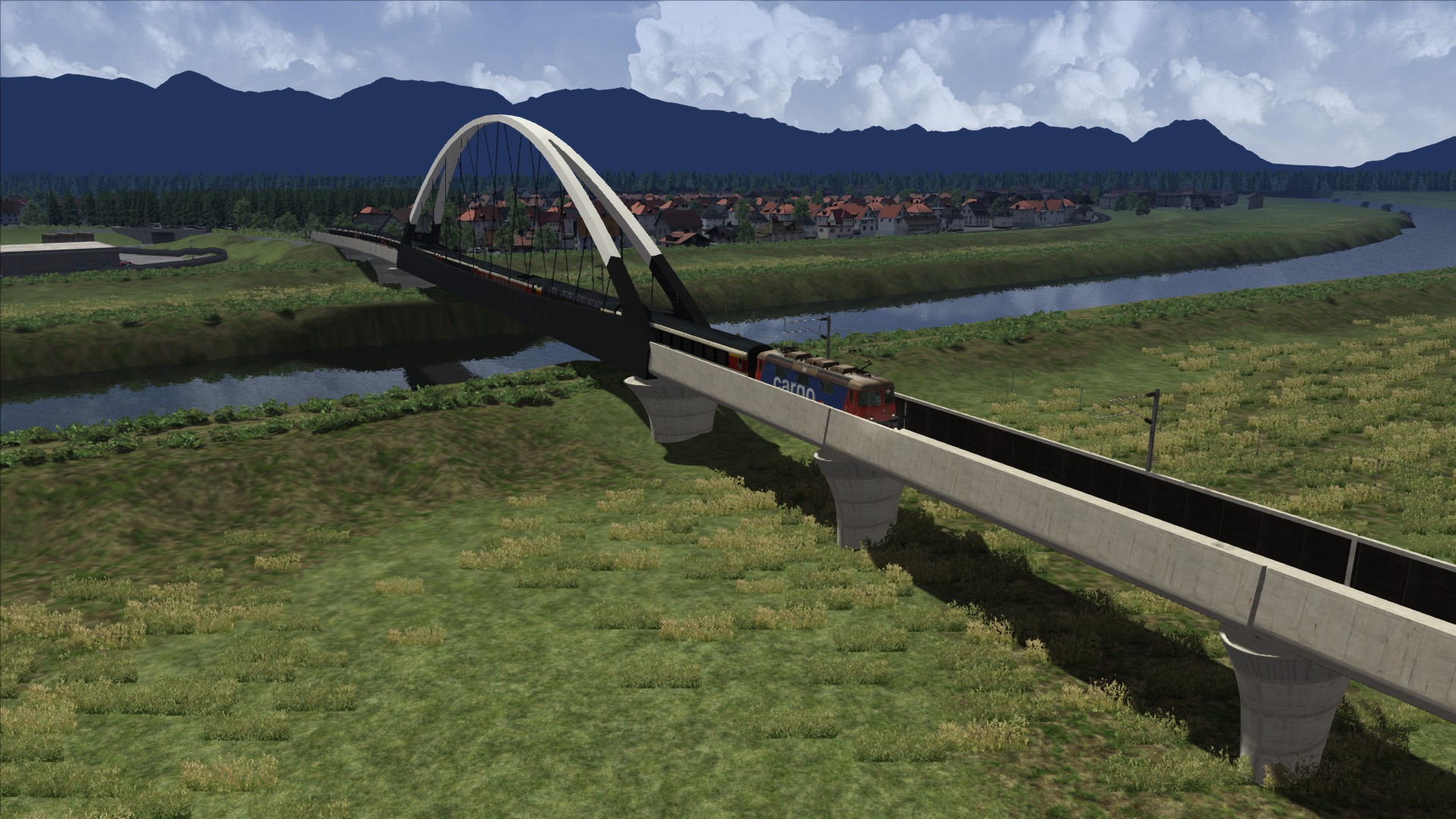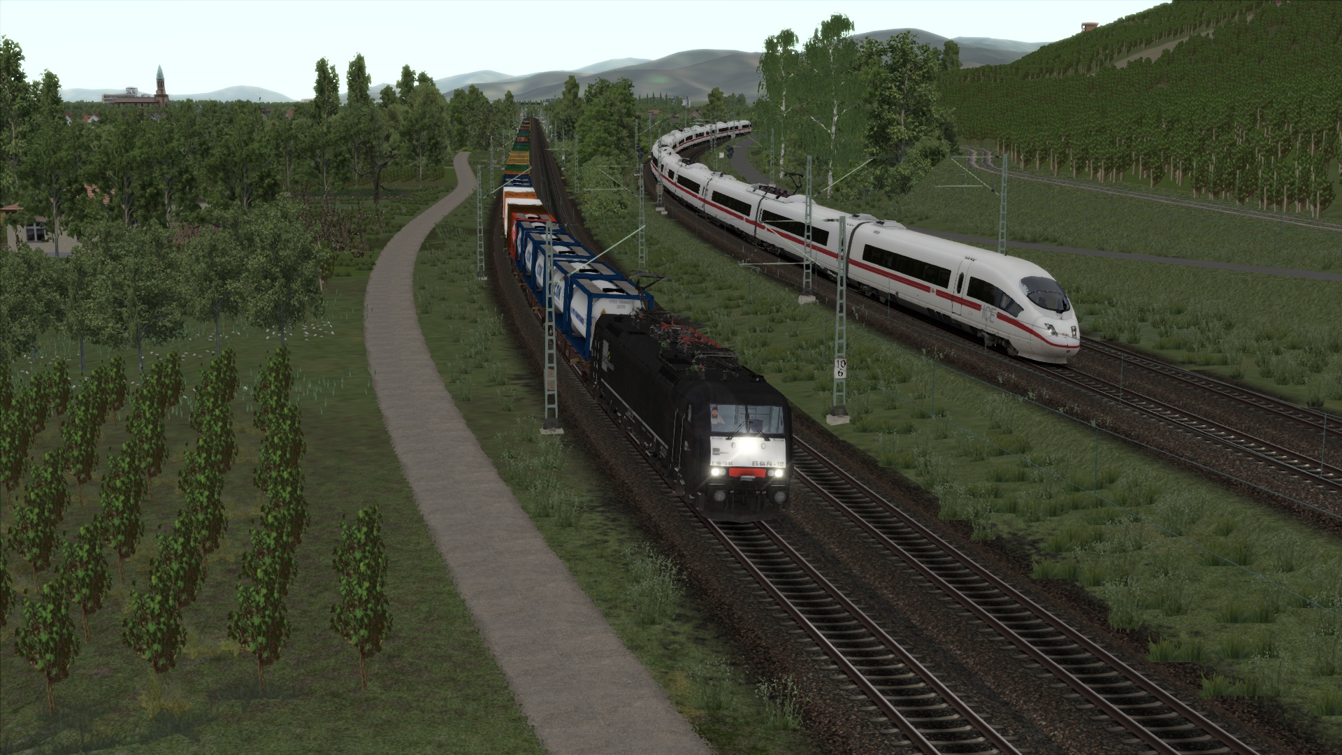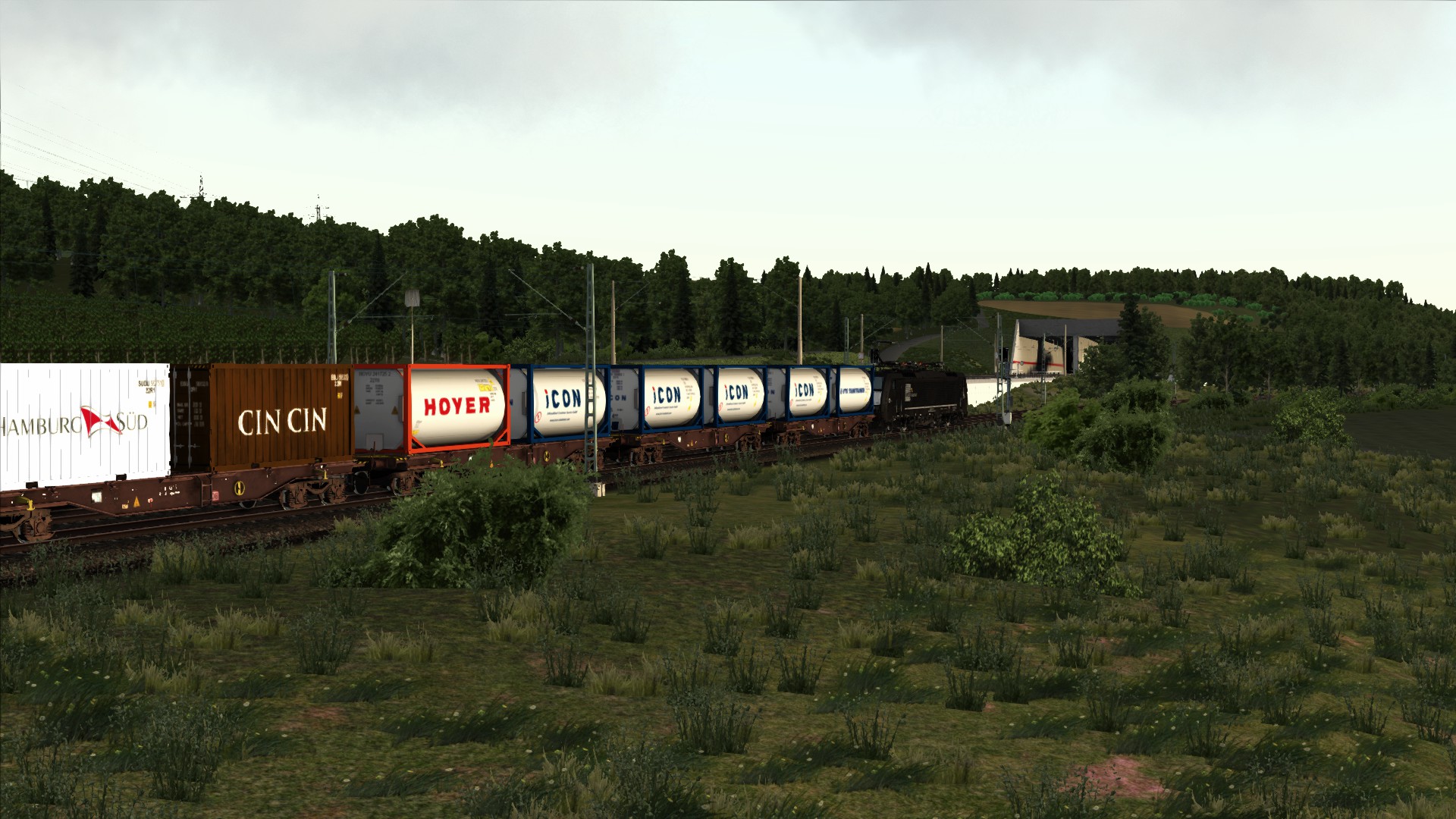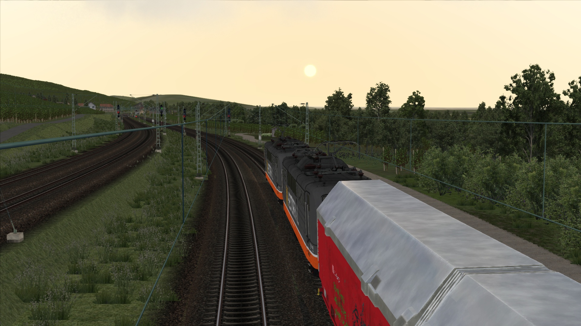 Mit der ÖBB Rh 1042 dem Brenner hinauf. Szenario OBB 1042 Brenner Zug, Personenwagen sind getauscht.