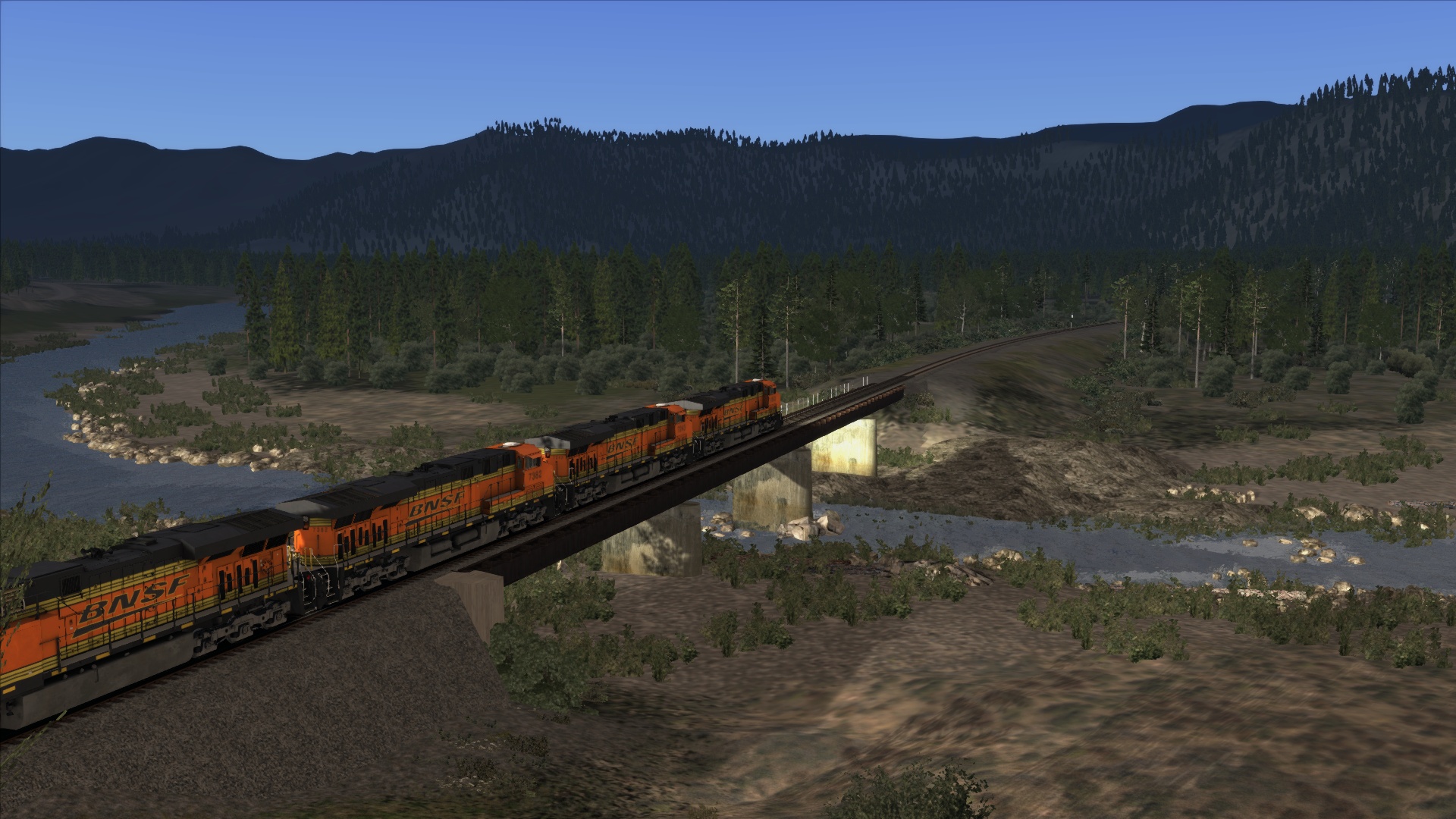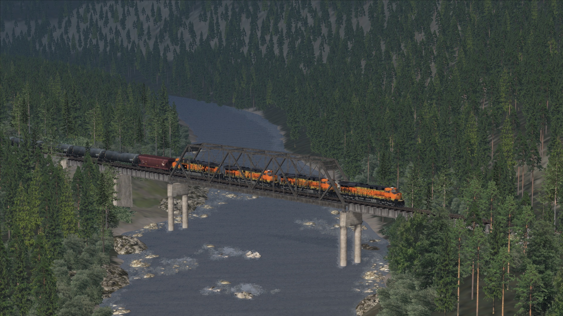 Stevens Pass von Mukilteo nach Wenatchee. Mit 5 GE ES44DC, 126 Milen (204Km) in 270 Minuten. Teil 2 Screenshots Ostportal Cascade Tunnel Berne nach Wenatchee.