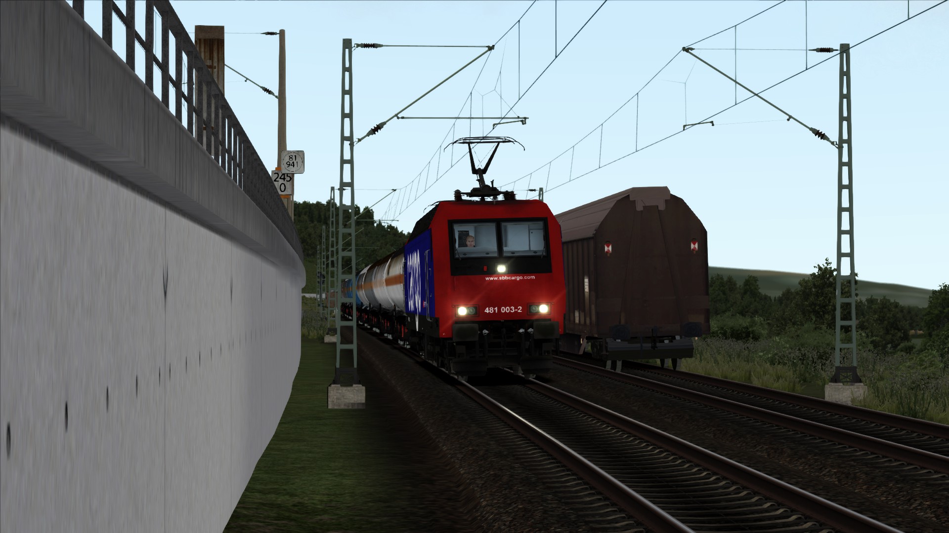 Oder mit der BR 185 ne SBB Cargo (Fiktiv). Fiktiv, weil die 185 nur 2 Panto auf dem Dacht hat.