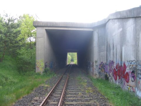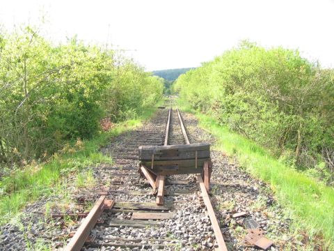 Es hat sich dabei immer um ein Zweischienengleis gehandelt. Es wurde von 1435 umgespurt auf 600. Deshalb gibt es optisch noch die für 1435 geeigneten Schwellen, worauf sich Zweischienen mit 600 mm Abstand sich hin und her bewegen. Man könnte sagen, dass es sich um ein Zweischienengleis 600 mm auf 1435 mm Schwelle handelt oder man könnte sagen. dass es sich um ein Dreischienengleis handelt, bei dem die dritte äußere Schiene abgebaut wurde.