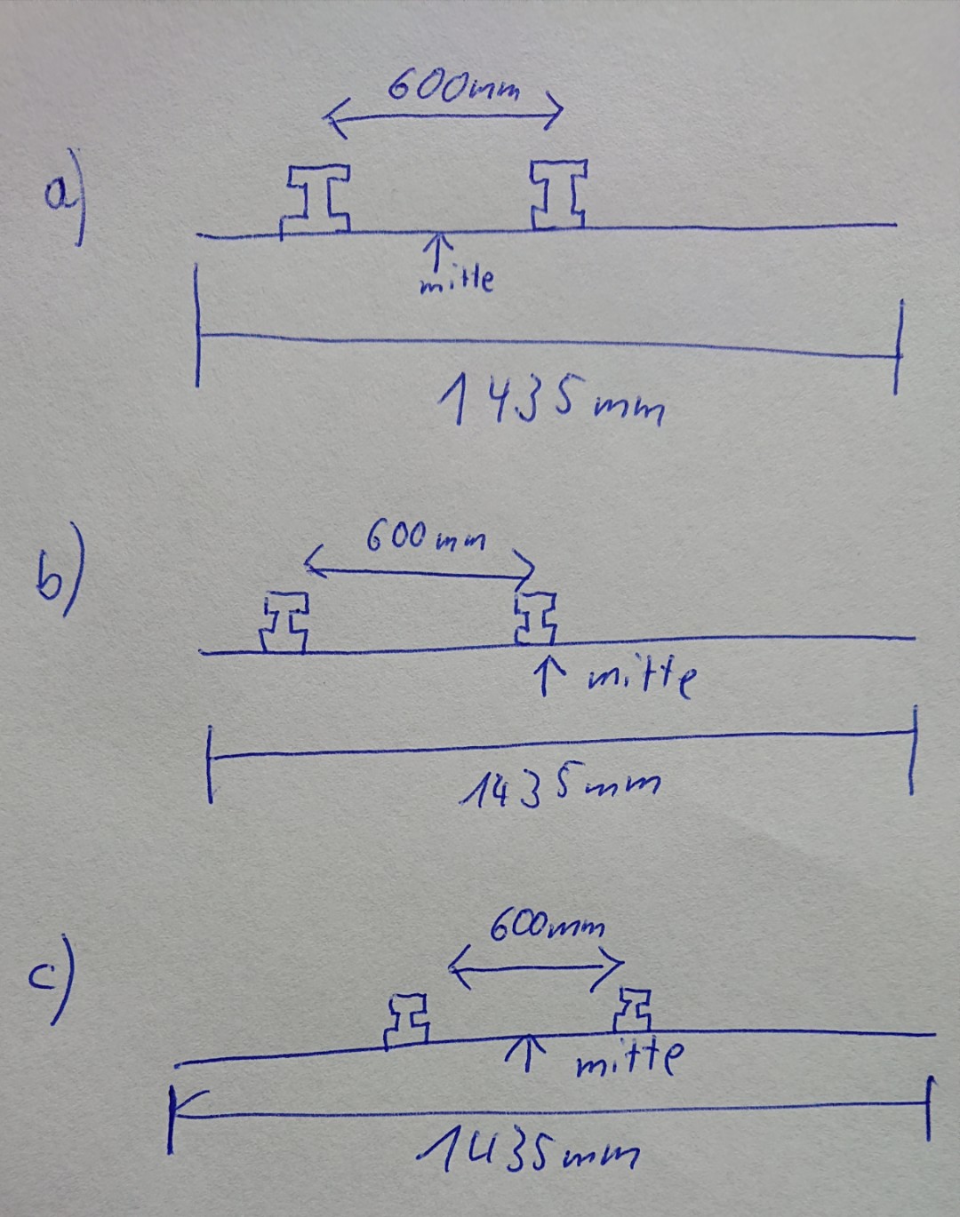 Kann mir jemand vll ein paar Ansätze geben, wie ich 1435 mm zu 600 mm umspure?