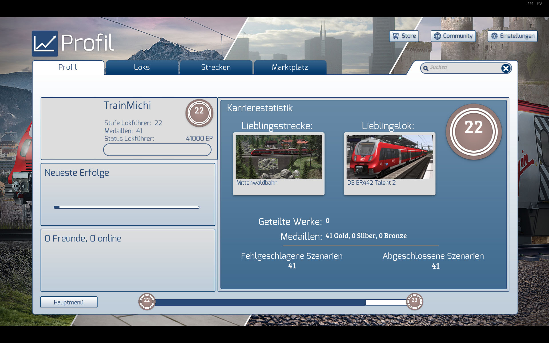 3) Beim Profil/Loks nur eine Lok angezeigt wird, obwohl alle Loks spielbar sind - siehe Dateianhang.