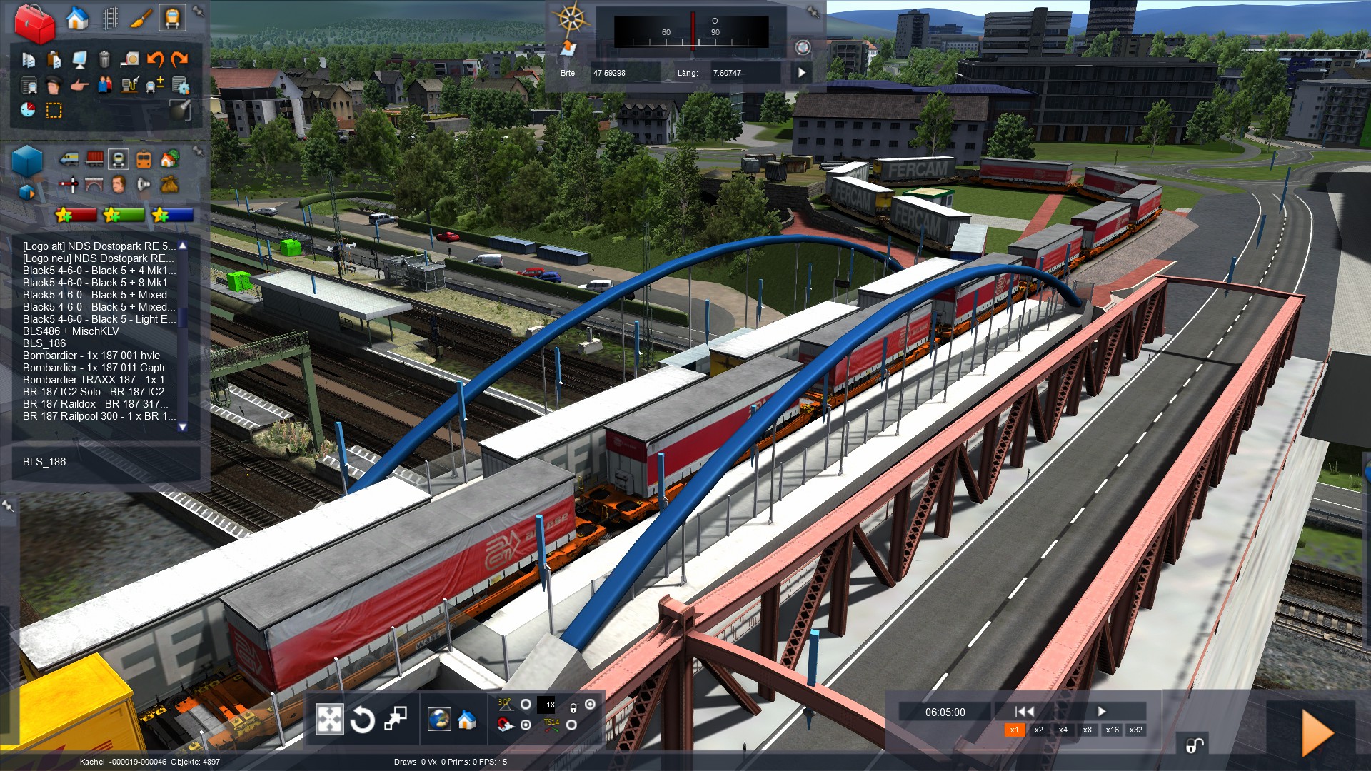 Das ich jedoch ein komplettes Szenario in 1,5 Stunden gebastelt hab, ist für Freiburg-Basel rekordverdächtig^^Wenn einem aber auf der Strecke die Langeweile überkommt, sollte man manl die Straßenbahntrasse ausprobieren wie ich hier mit einer 294 und einem KLV^^