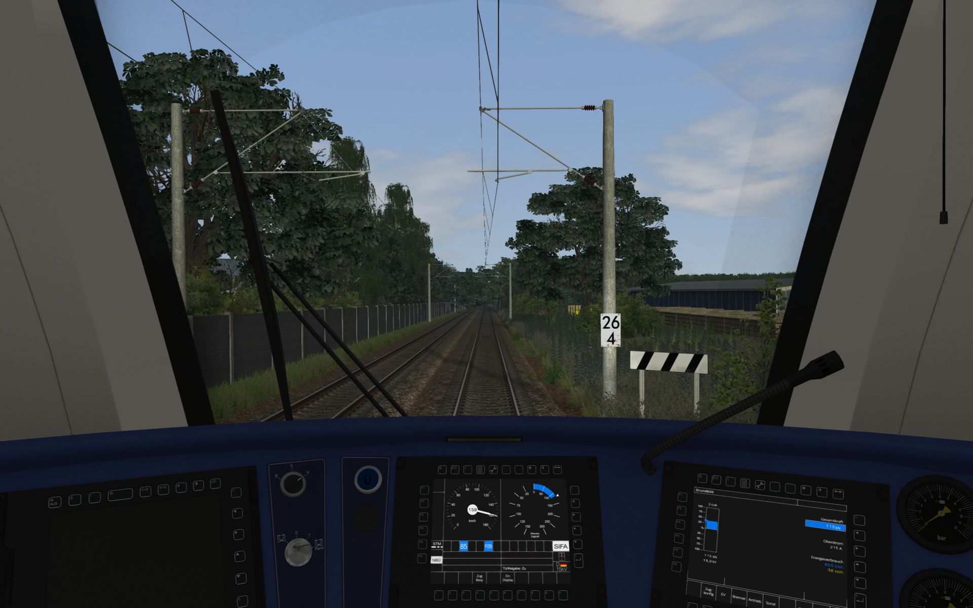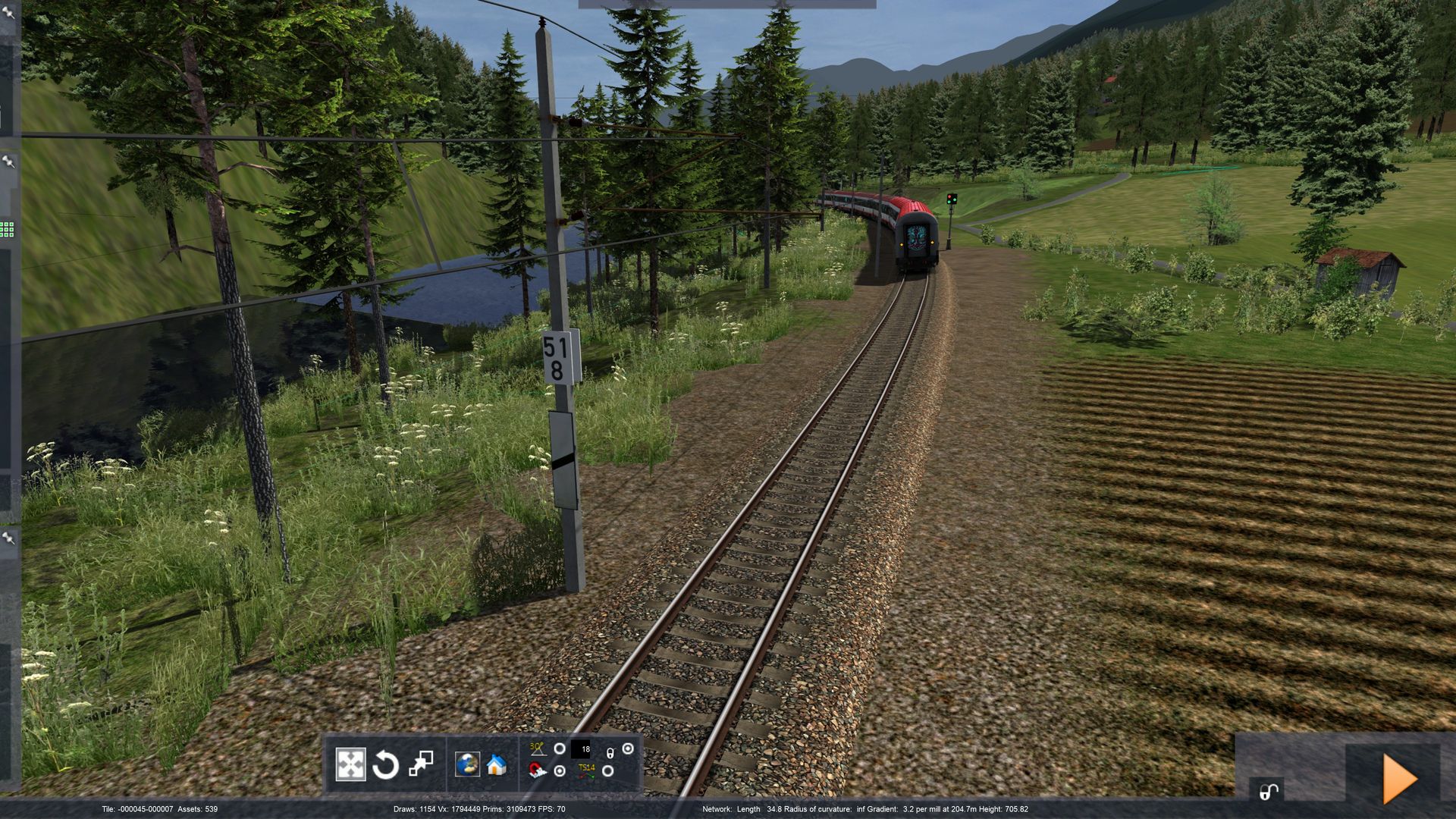 Made a new trip with IC 2436, and managed to get my shots. I found vegetation bugs at Km 26,4 (after Delmenhorst, trees blocking the line), at Km 23,2 (trees hovering in air at the left side), and the same grass crossing the rail at Oldenburg Hbf (as others have found). The bugs at Km 26,4 and Km 23,2 I removed myself in the previous version. I have scenery density, etc at max. I let the pictures speak.