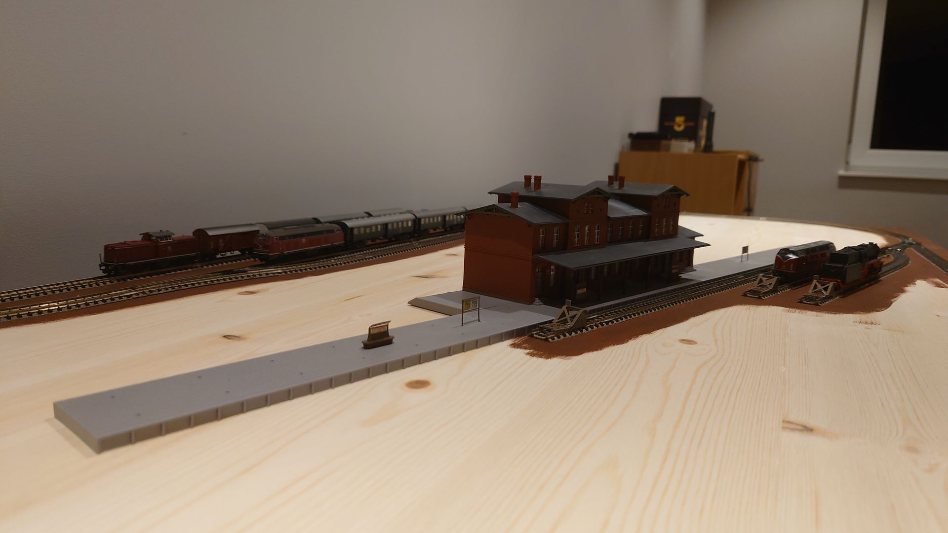 I love all the scales mentioned here. Pic shows my 160 x 600 (to be augumented from 60 cm to 75 cm) N-system being built. PS: Things are moving fast now. The station will be behind the BR 211/BR 218, just need to add a little wood first. I use this station from Auhagen as it has a good resemblance to Varel (Oldenburg).