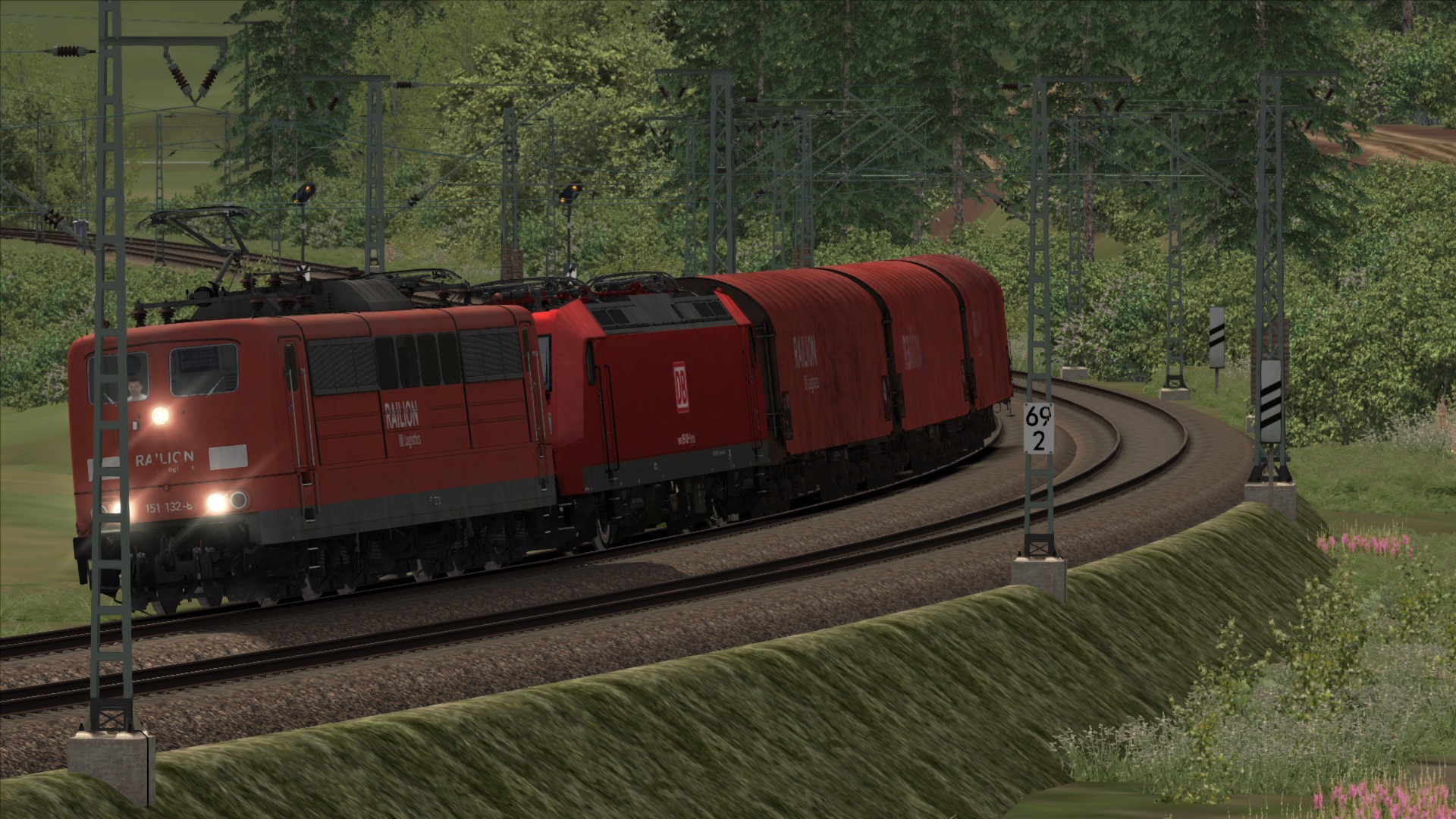 Oder es gibt noch die Variante mit in Graben-Neudort nach dem Bahnsteig mit 80kn/h auf die Rheintalbahn zu fahren und der ICE Überholt auf der Fernbahn und wechselt in Molzau wieder auf die Rheintalbahn und dann dem ICE hinterher.