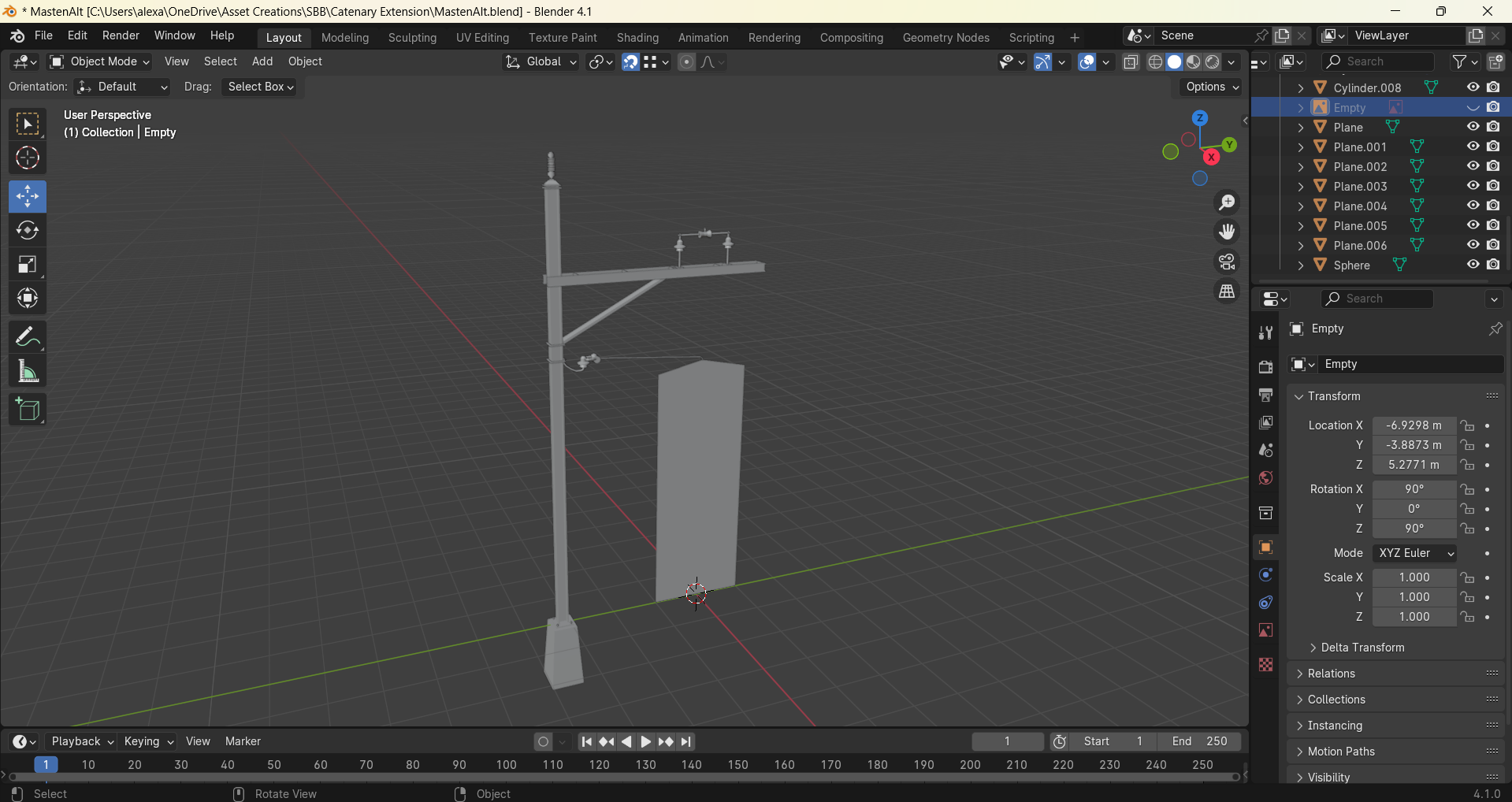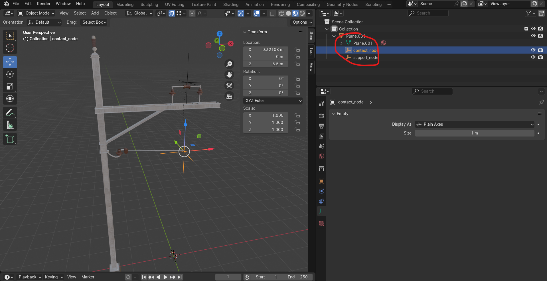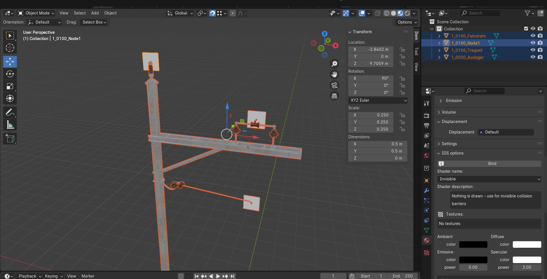 Ich habe sehr viel versucht, bin aber leider immer gescheitert. Ich kann den Masten nicht mit einer einfachen Plane als Kontaktnode exportieren wie im englischsprachigen Tutorial und die Kontaktnodes funktionieren nicht.