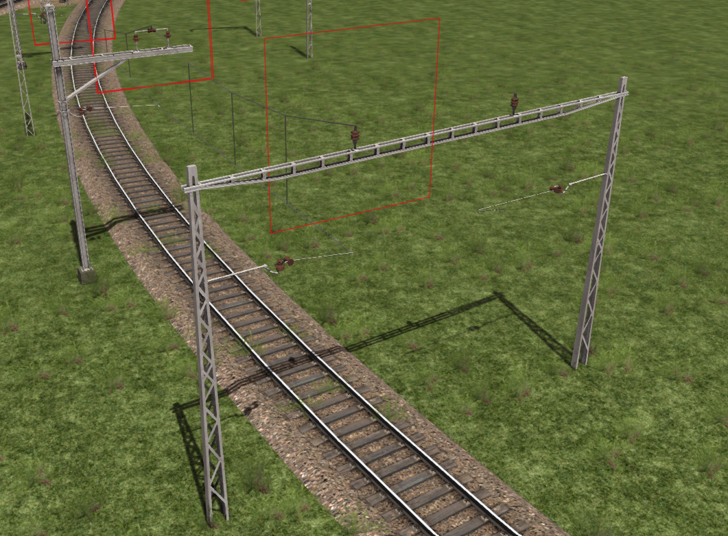 Wie kann ich diese Fahrletungsmasten so bauen, dass man da Fahrleitungen setzen kann und wie hoch muss die Fahrleitung sein?