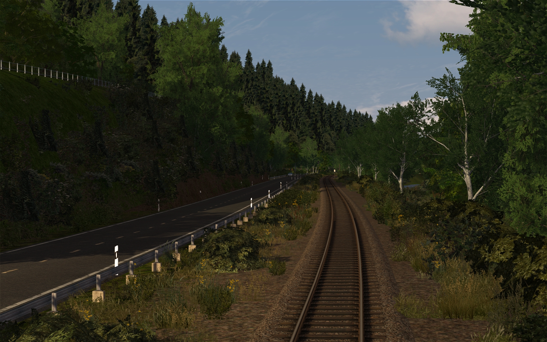 - geplante Paywarevoraussetzung: Hamburg-Hannover, Im Köblitzer Bergland V3, Konstanz-VillingenDas kleine Streckenstück wird Freeware und zugleich der letzte offizielle Release von meiner Seite aus. Entwicklungsstand: Gleisbau abgeschlossen, Gelände angepasst, grobe Signalisierung steht --> Ungefähr zu 50 Prozent fertig. Anschließend ein paar Bilder. Sie stellen im Gegensatz zu Paywareankündigungen auch WIRKLICH noch nicht den endgültigen Stand dar und einiges wird noch angepasst.