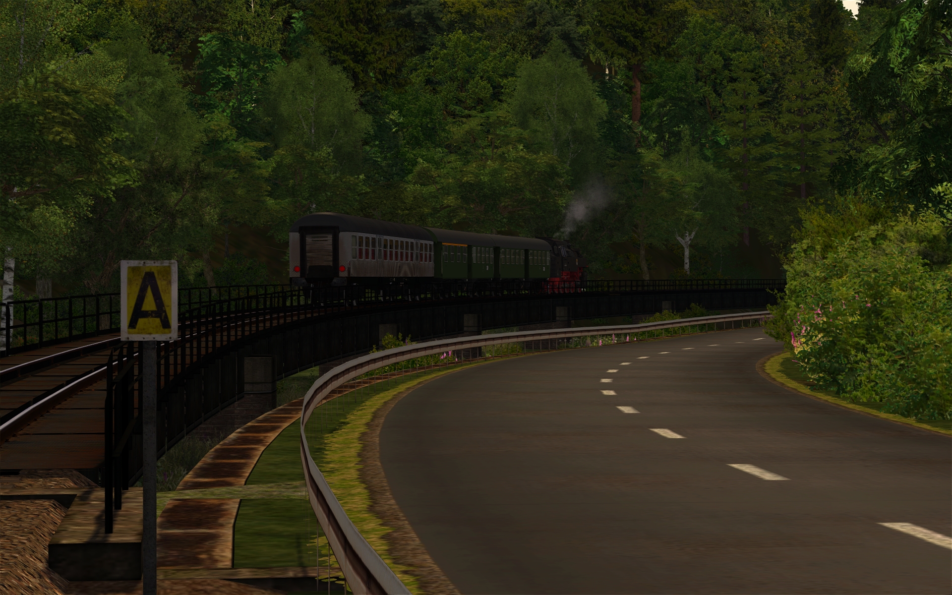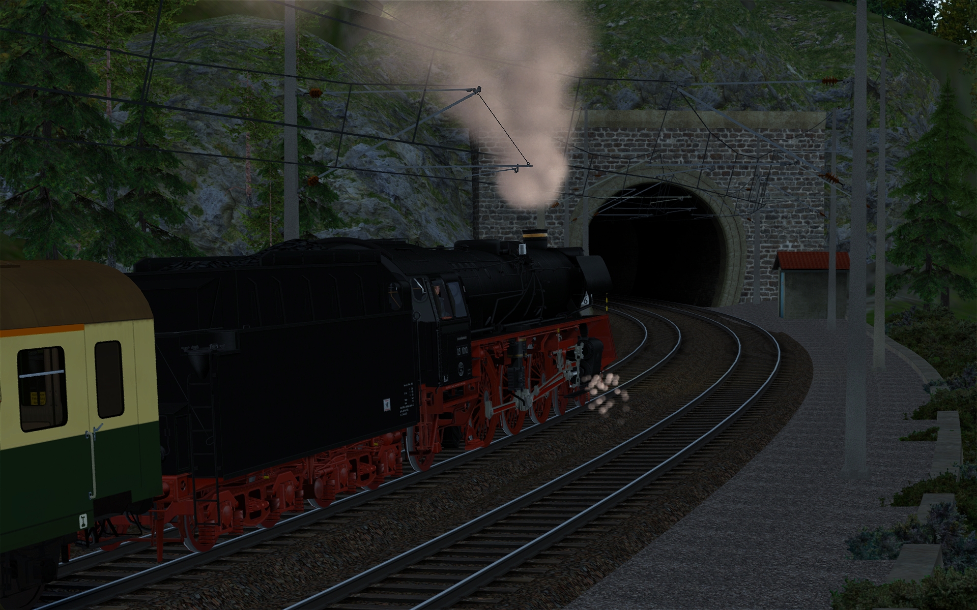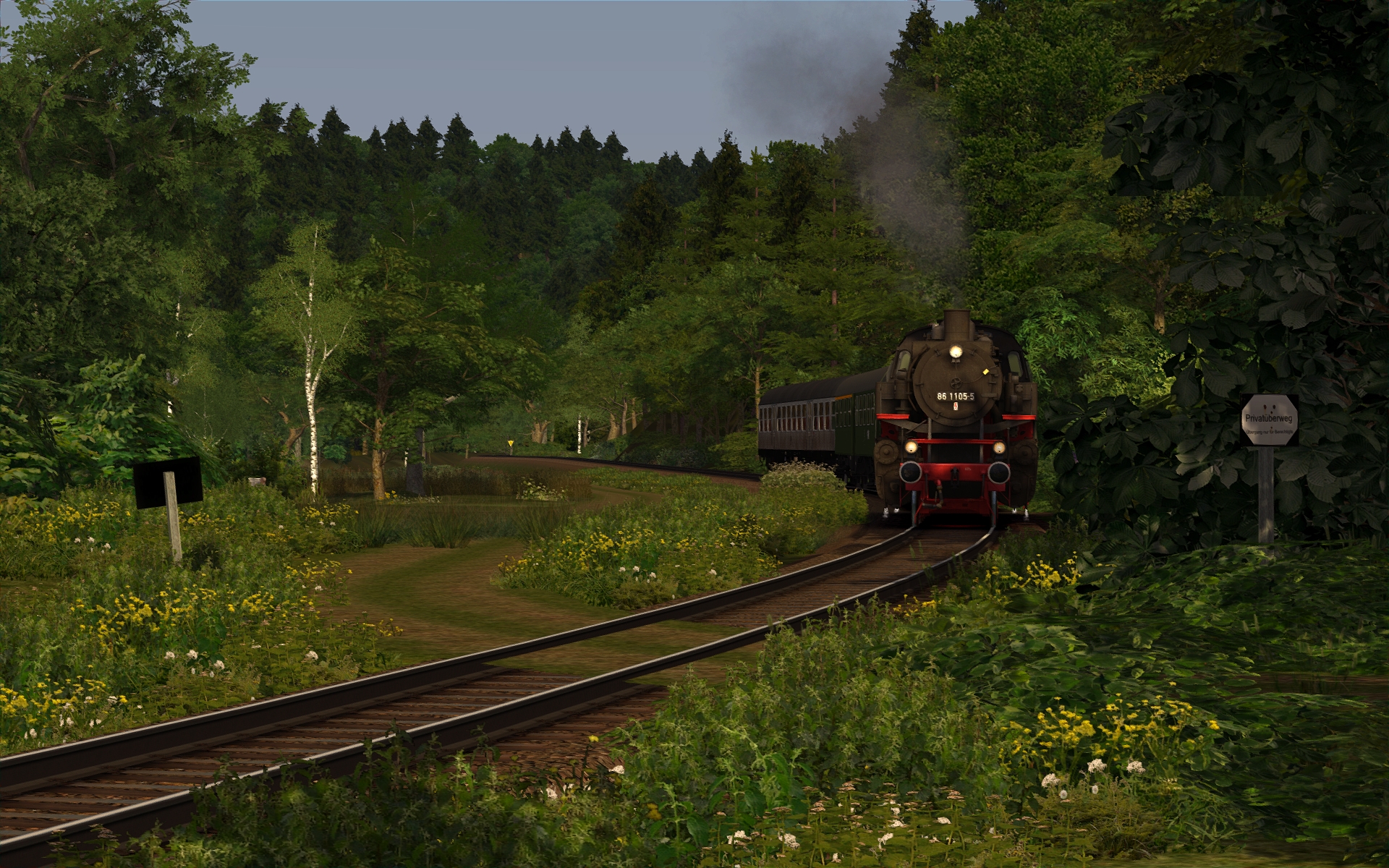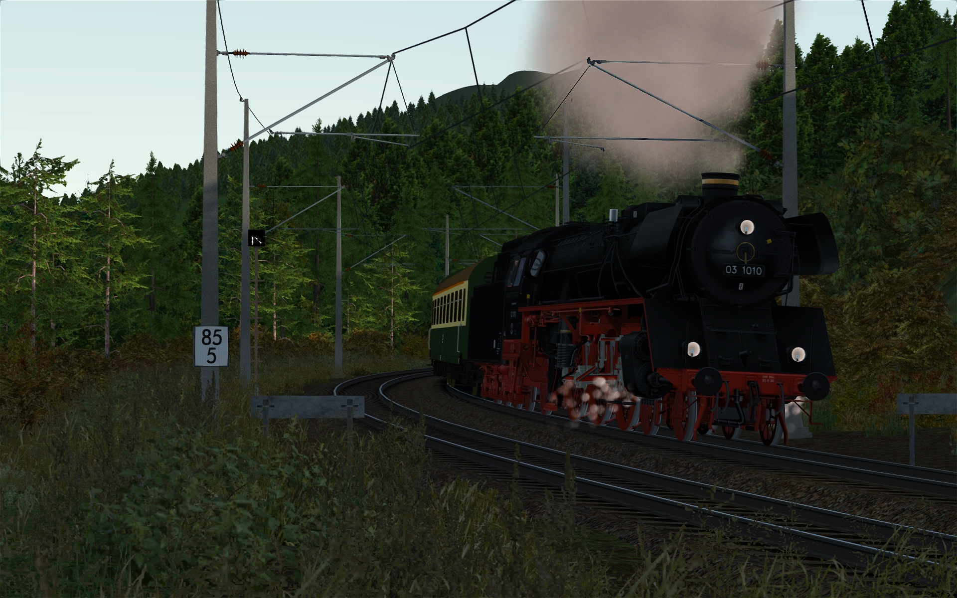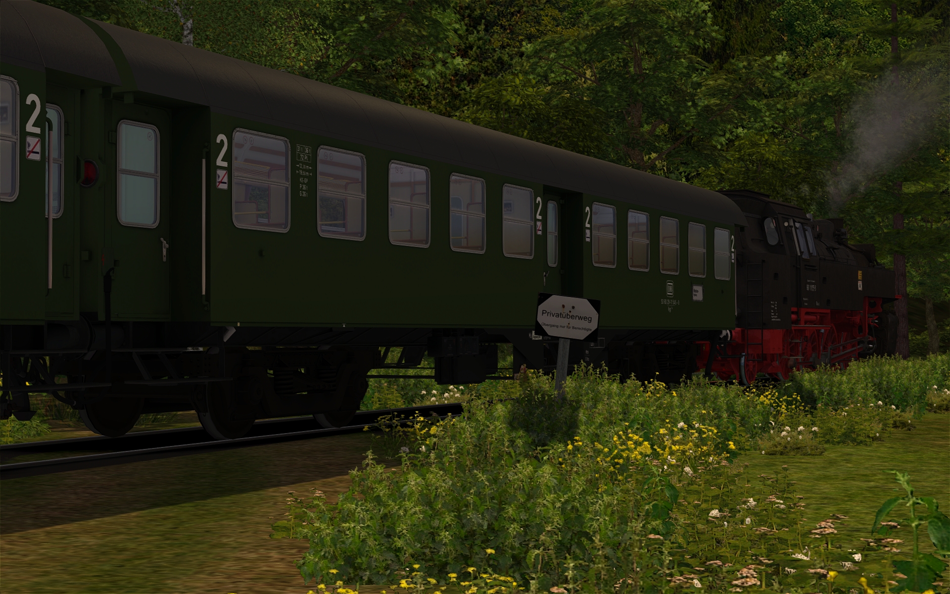 Die Strecke taugt eigentlich für jegliches älteres Material, was wir im TS haben. Auch mit der 218 kann man drauf fahren. Schnellfahren ist hier aber nicht angesagt bei einer VMax 40 km/h. Eher genießen der Landschaft sowie Lok - und Wagensounds. Das Kreischen der Donnerbüchsen - herrlich. ![]()